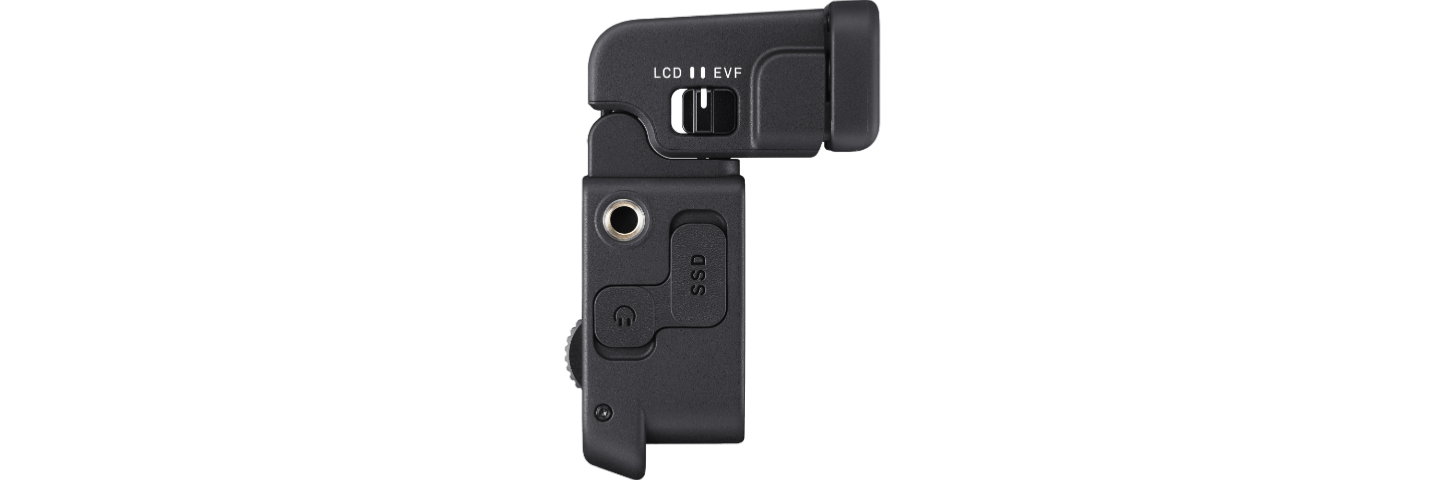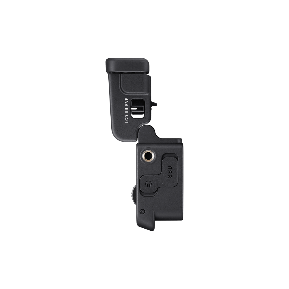 Users can record to an external SSD drive via the dedicated USB plug (Type-C), which is located on the side of the EVF-11.