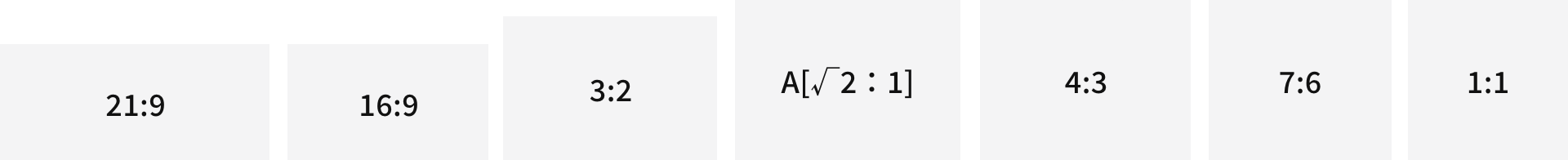 [21:9] , [16:9] , [3:2] , [A Size (√2:1) ] , [4:3] , [7:6] , [1:1]
