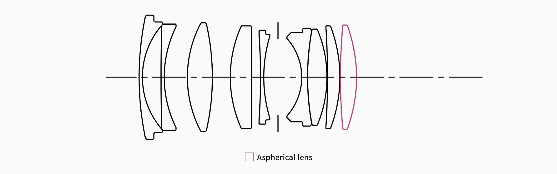Putting a large-aperture aspheric lens first in the series of lenses makes possible a slim barrel, while optimized power distribution helps correct various types of optical aberration. These features give this F1.4 large-aperture lens truly optimal image quality.
