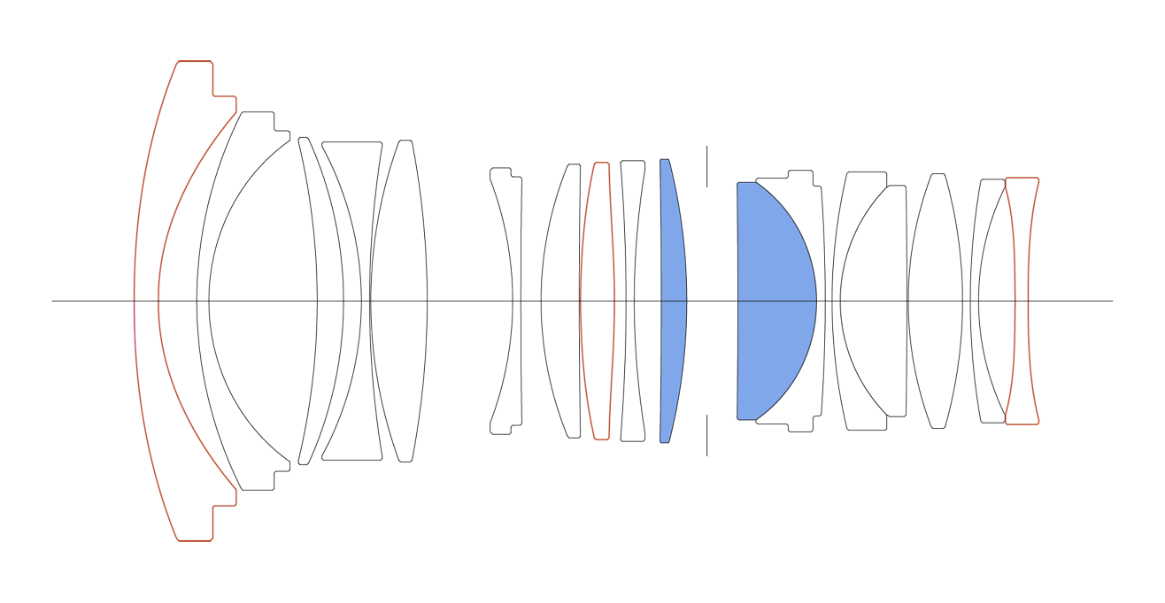 Lens construction: 17 elements in 15 groups