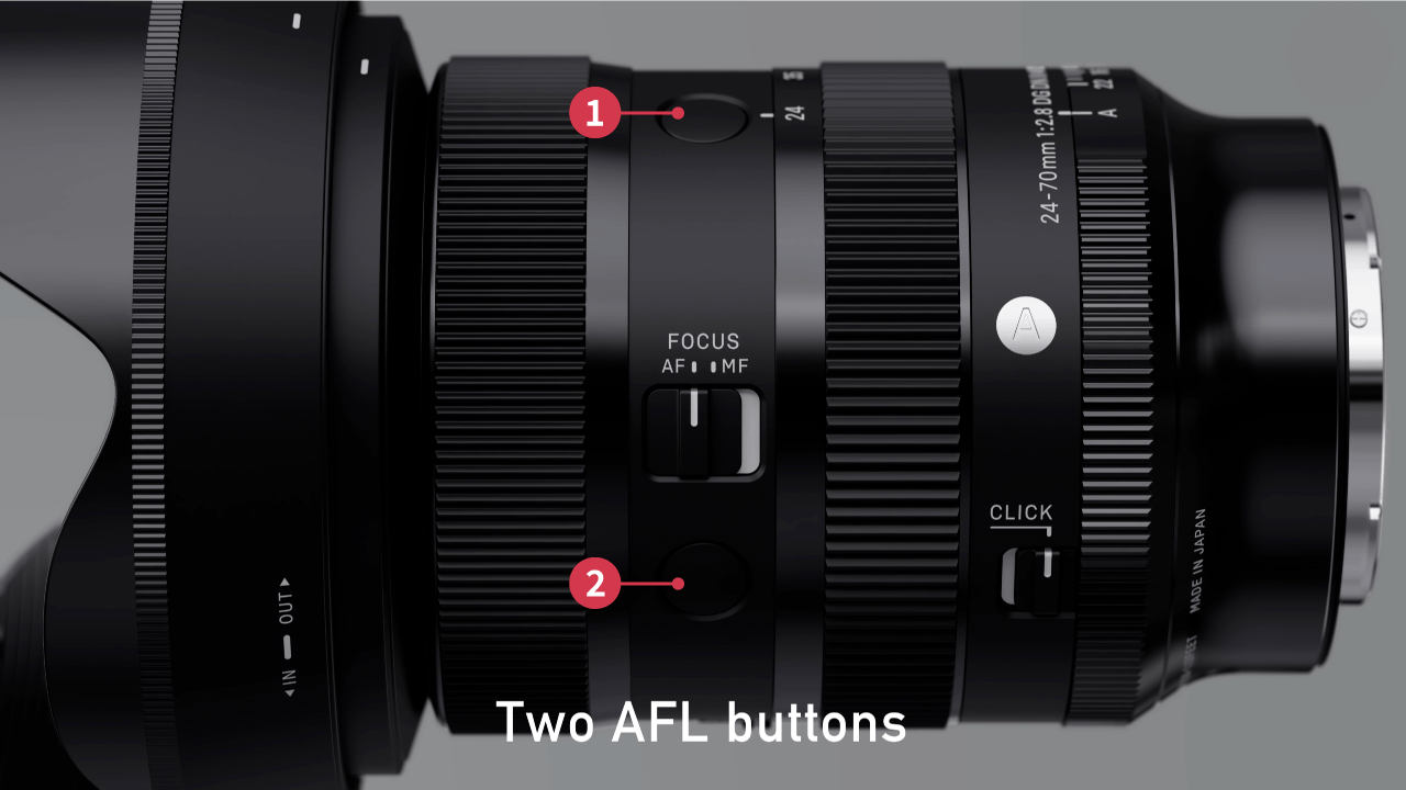 The lens is equipped with two AFL buttons*, to which a range of functions can be assigned via the menu on selected cameras, one more than the previous model. In addition to the side, the additional button has been positioned on the top to facilitate button operation when the camera is held in vertical orientation.