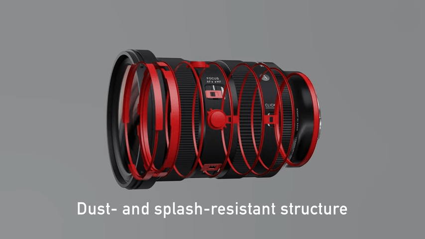 In addition to a dust and splash resistant structure, the front element of the lens features a water and oil repellent coating, allowing users to shoot without concerns even in harsh outdoor environments.