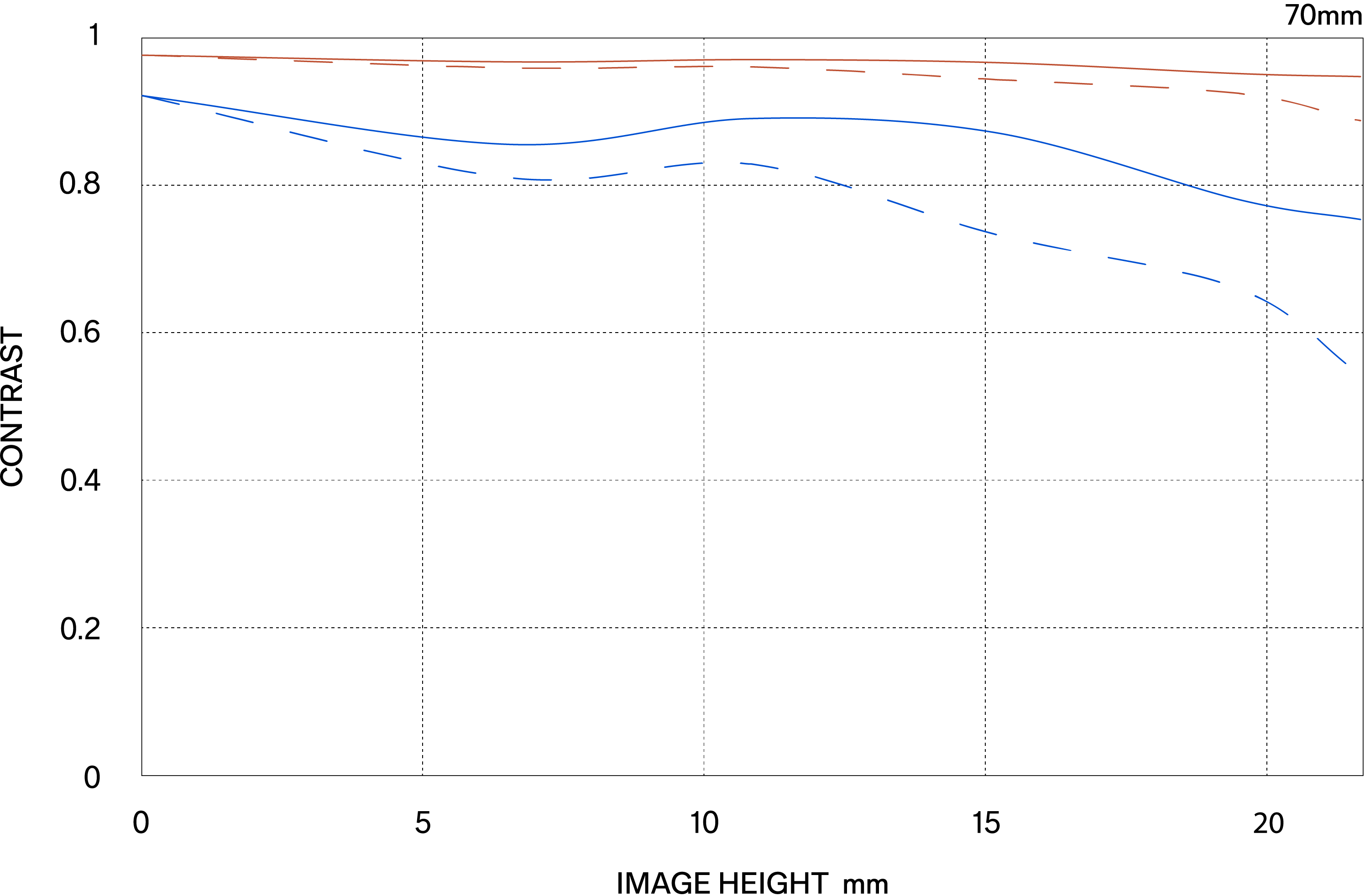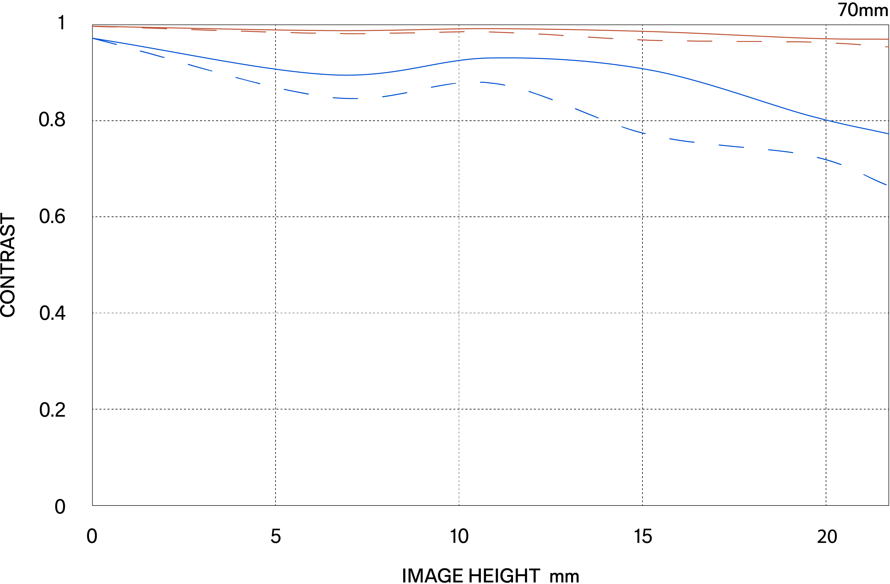 The optical design of the lens includes 6 FLD glass elements, 2 SLD glass elements, and 5 aspherical lens elements to thoroughly suppress various aberrations throughout the entire zoom range. In particular, sagittal coma flare has been well controlled to achieve consistently high resolution all the way to the periphery of the image. By also effectively correcting lateral chromatic aberration, high resolution, beautifully rendered images can be achieved, free from color fringing can be achieved.