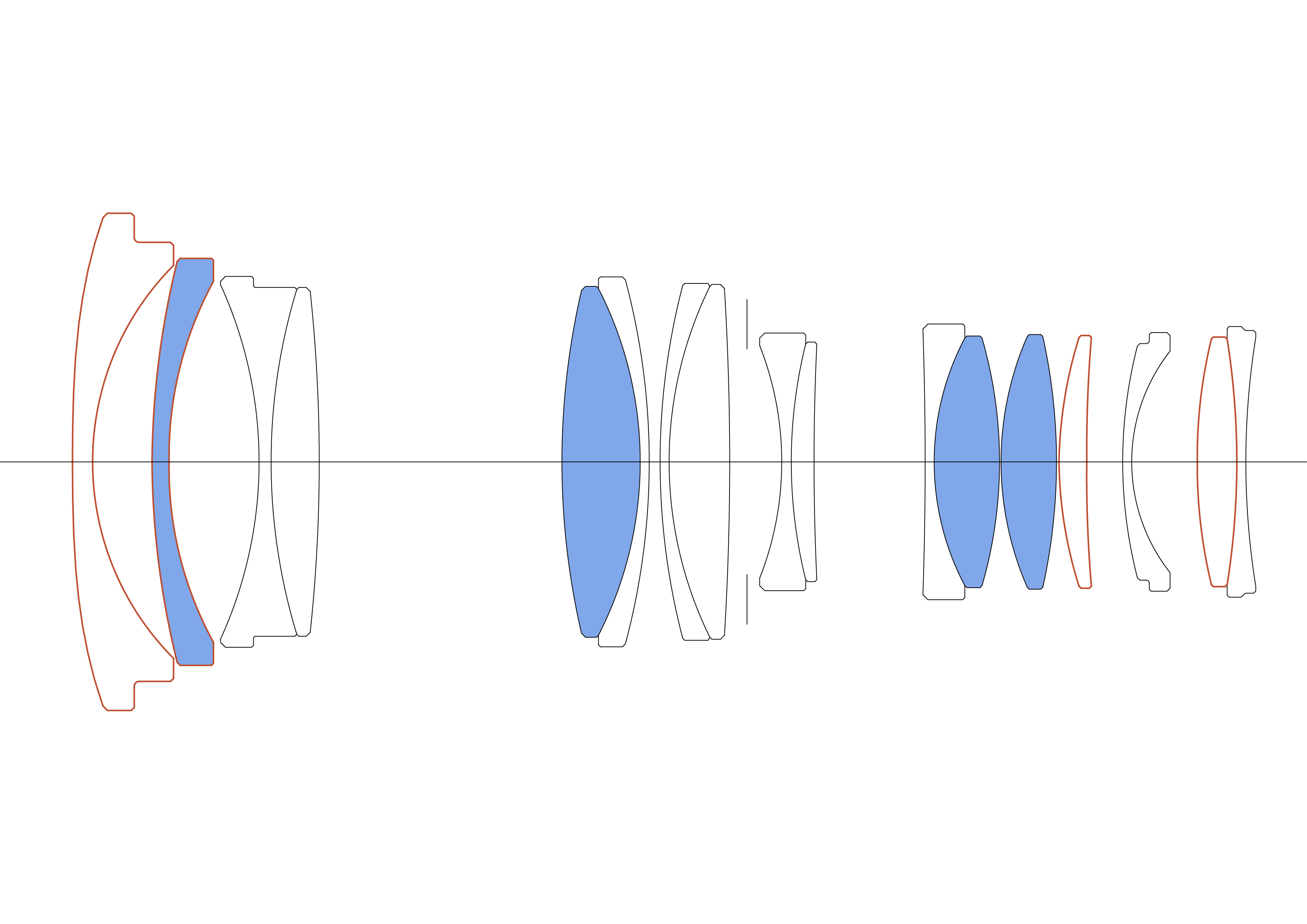 17 elements in 11 groups (4 SLD, 4 aspherical elements)
