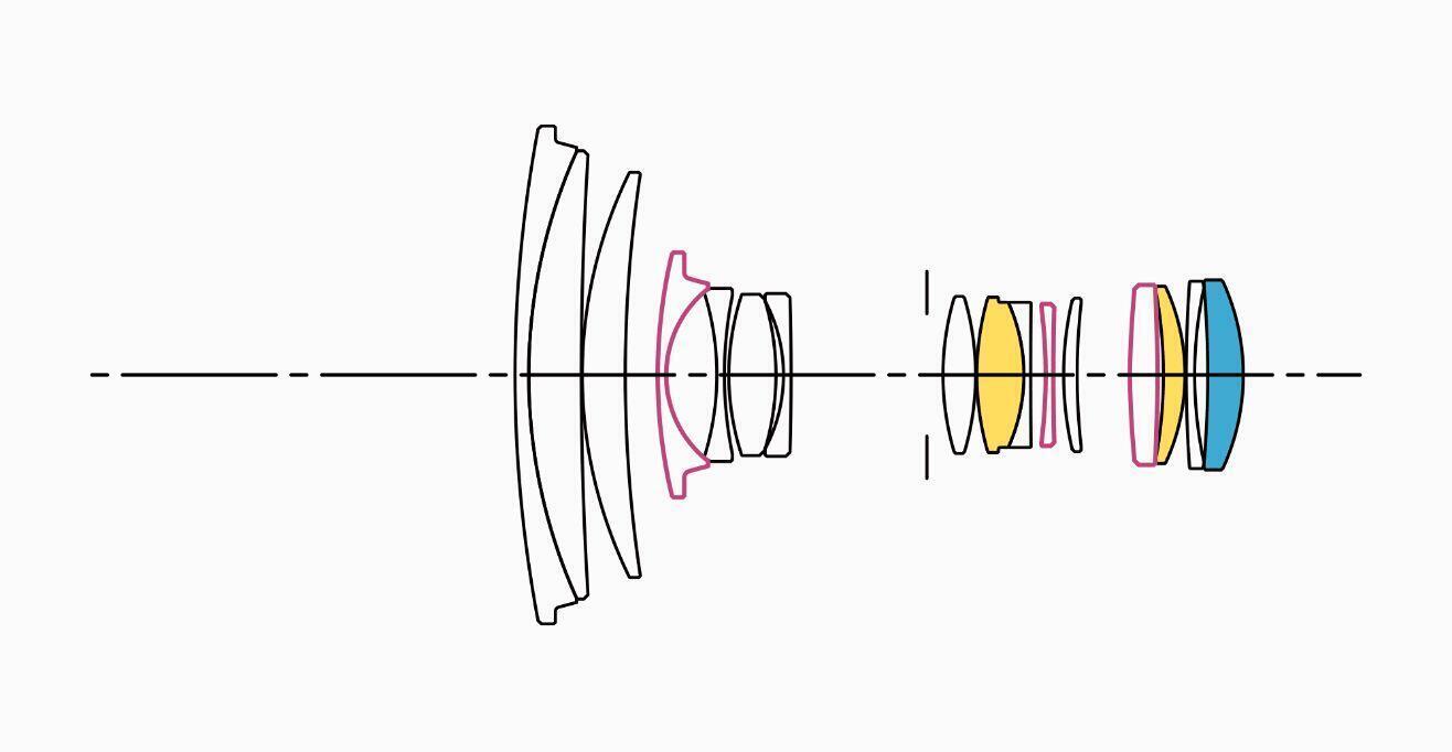 • Lens construction: 16 elements in 14 groups, with 2 FLD glass and 1 SLD glass and 3 aspherical lenses