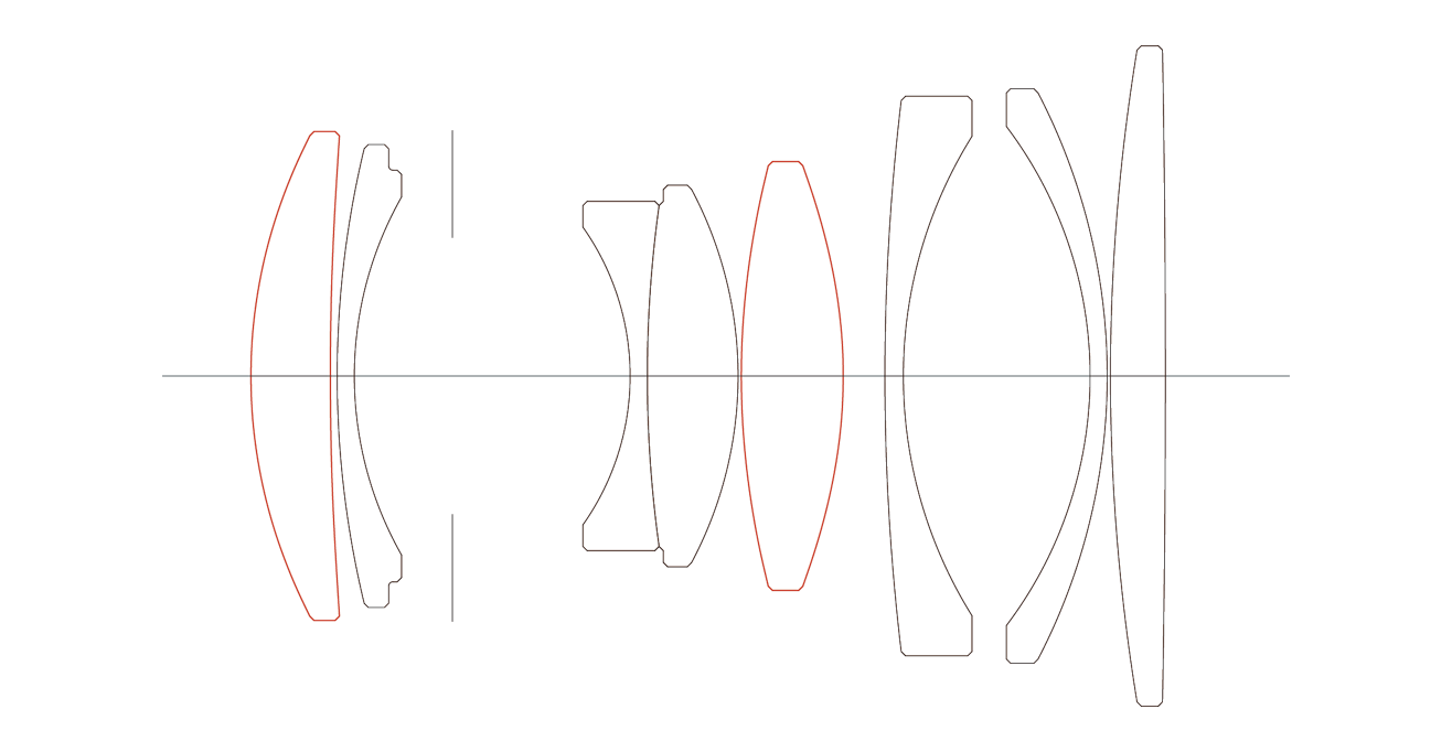 Lens construction: 8 elements in 7 groups (2 aspherical lenses)