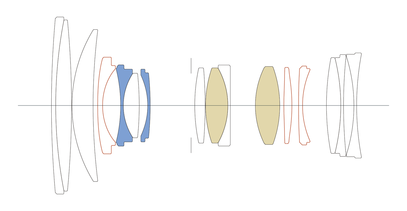 12 groups, 16 elements (2 FLD elements, 2 SLD elements, 3 aspherical elements)