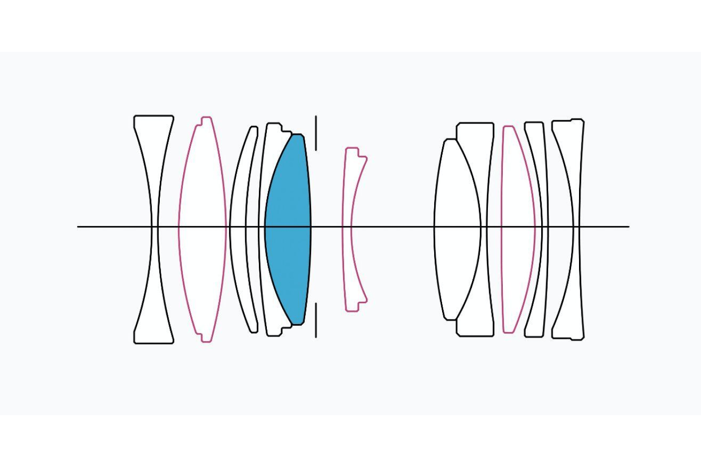 Lens construction: 11 elements in 9 groups with 1 SLD and 3 aspherical lens elements