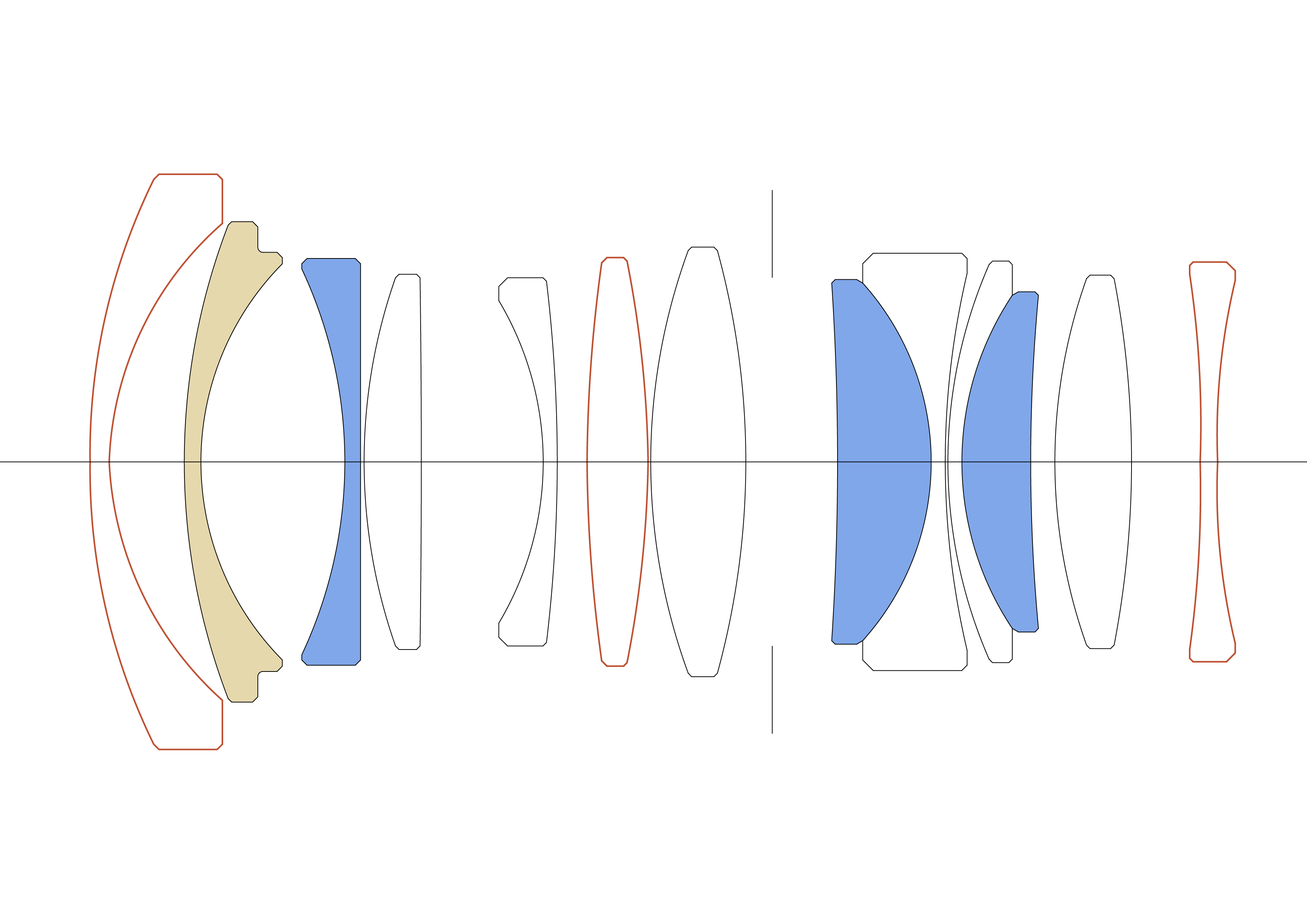 13 elements in 11 groups (1 FLD, 3 SLD, 3 aspherical elements)