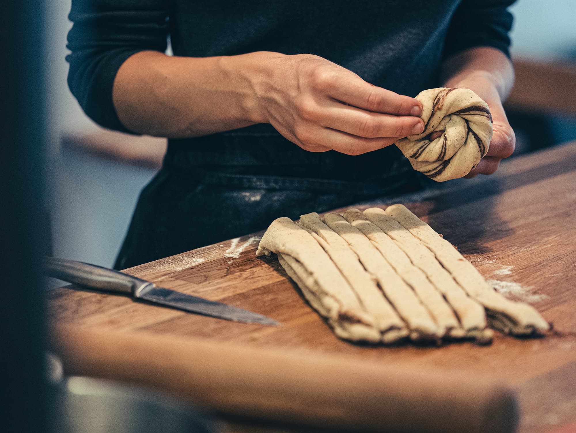 Starting the day at fringe is a moment of calm preparation. We make cinnamon buns, rolling them out, tying them into knots before baking them. We weigh every dose of coffee, so that each cup of coffee is extracted in the same way, every time, every day. It is essential that customers get the most of what each coffee has to offer.