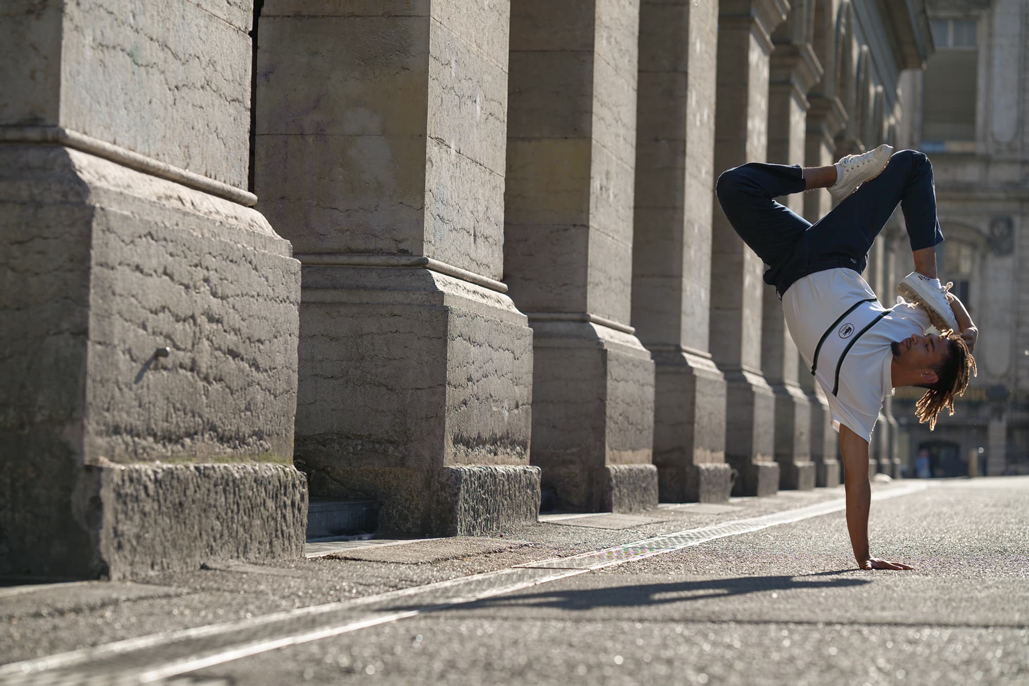 Younès. 19 years old. He’s the new guy on the playground where dancers are used to rehearse here but coming from a family of dancers, you know you’ll hear about him! Always there to repeat power moves and tricks. Great guy to go out with
