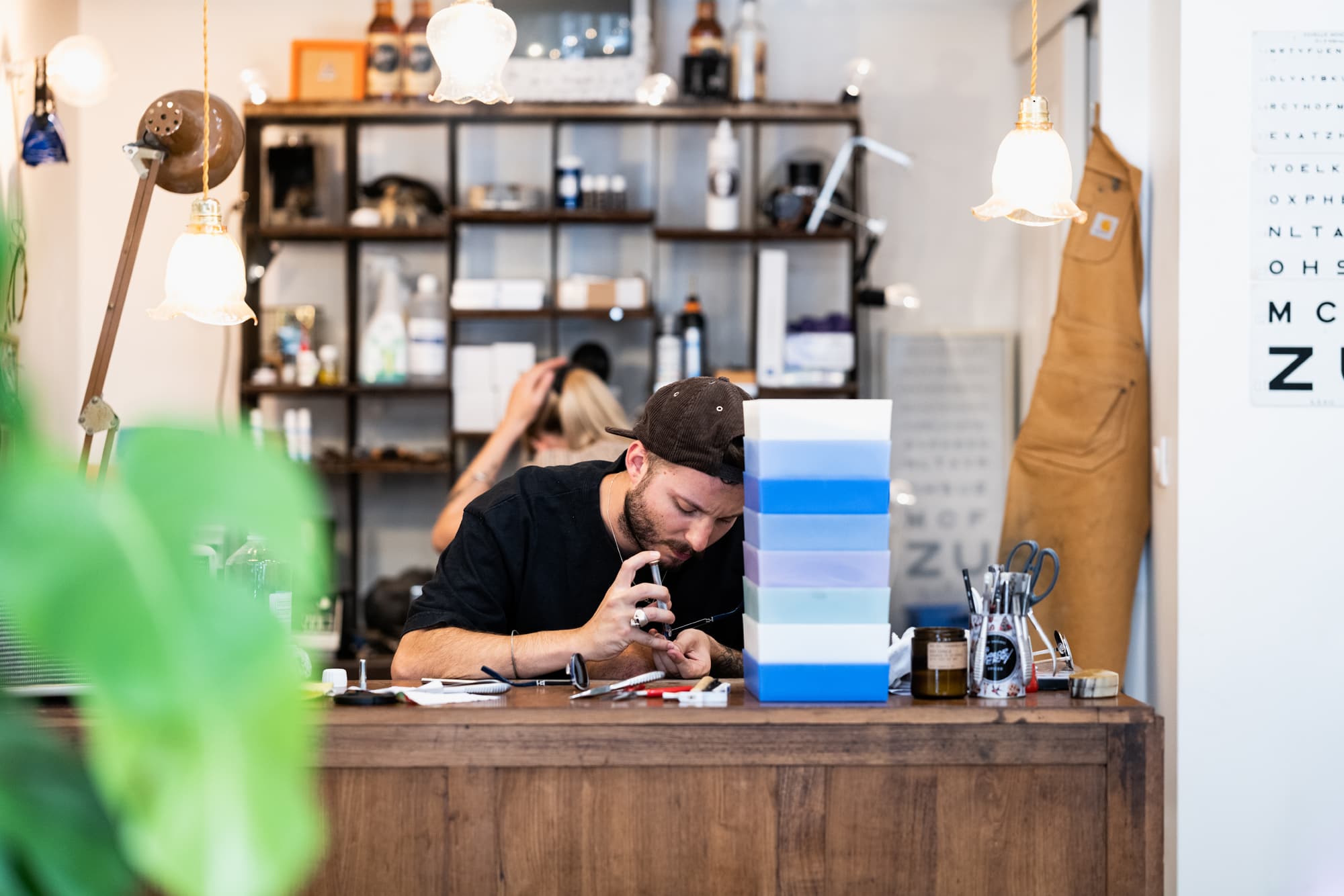 Leo, 30 years old, is a father of two and optician like no other. His thing is travelling to find glasses, sometimes very unique ones, fix them and offer them to the customers of his shop Retroviseur Workshop. I love how creative, and eco-conscious he is. I always feel great in his shop, listening to records with him.
