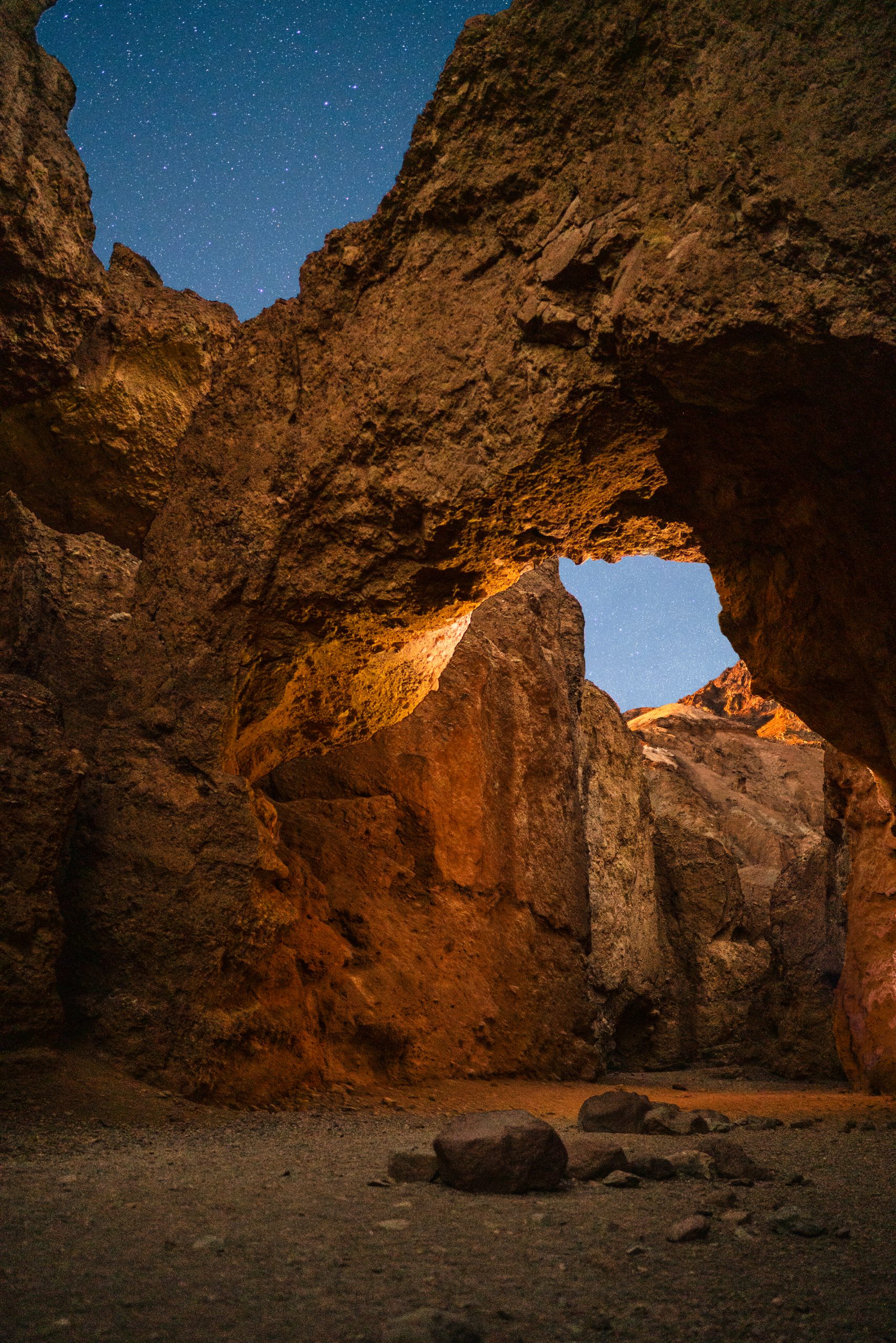 Although I was happy with how the lighted scene would work, I wanted to take one more image to help emphasize the massive scale of this arch. I set another timer and used my headlamp as a lantern to help light the scene while standing in it. Click, run in to place, hold still, hold still, run back and review. A few tries and I was stoked on the results.