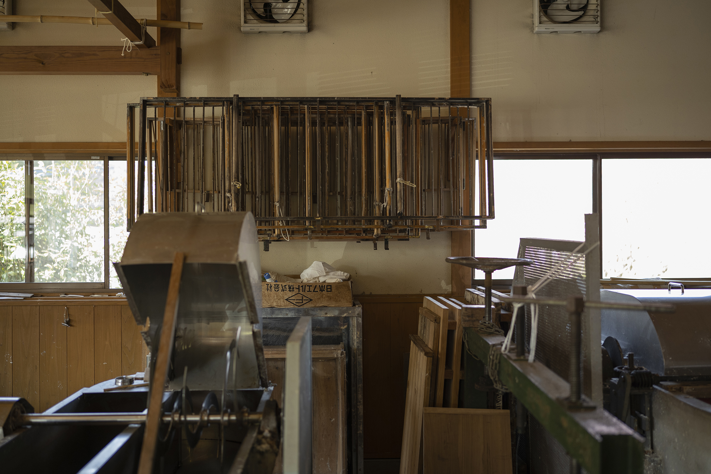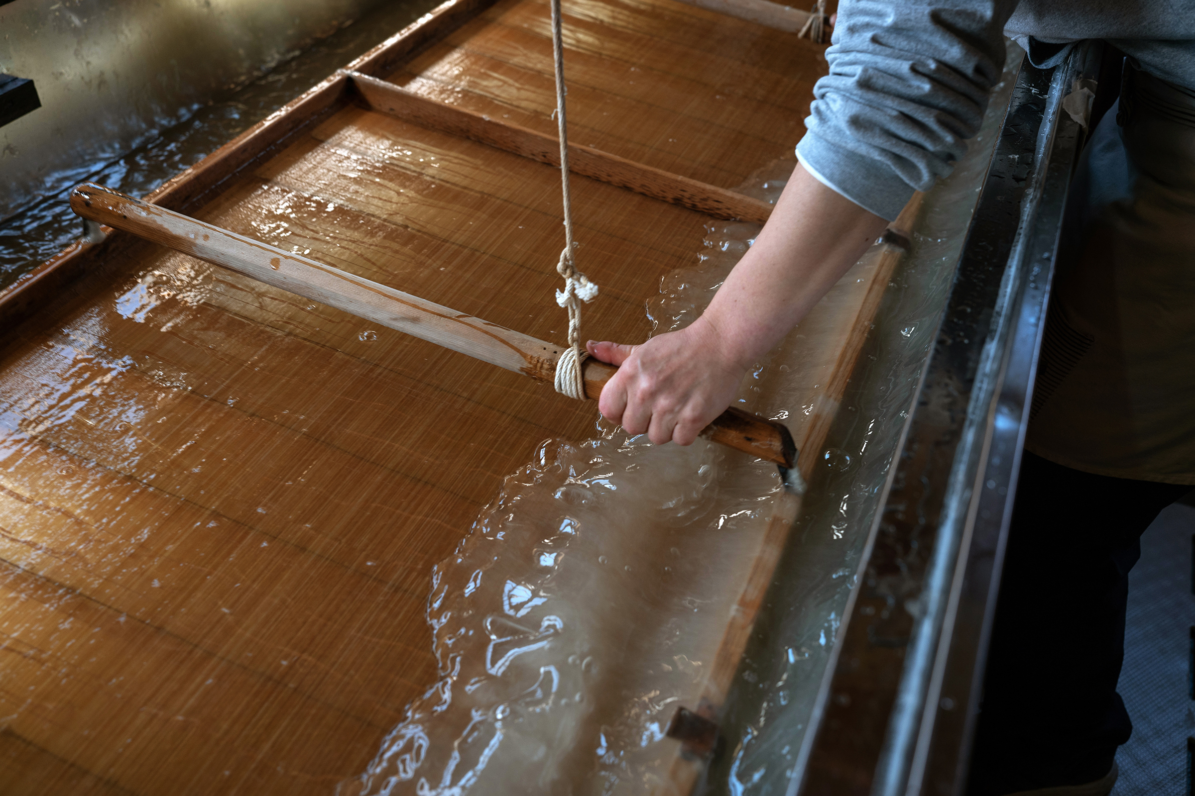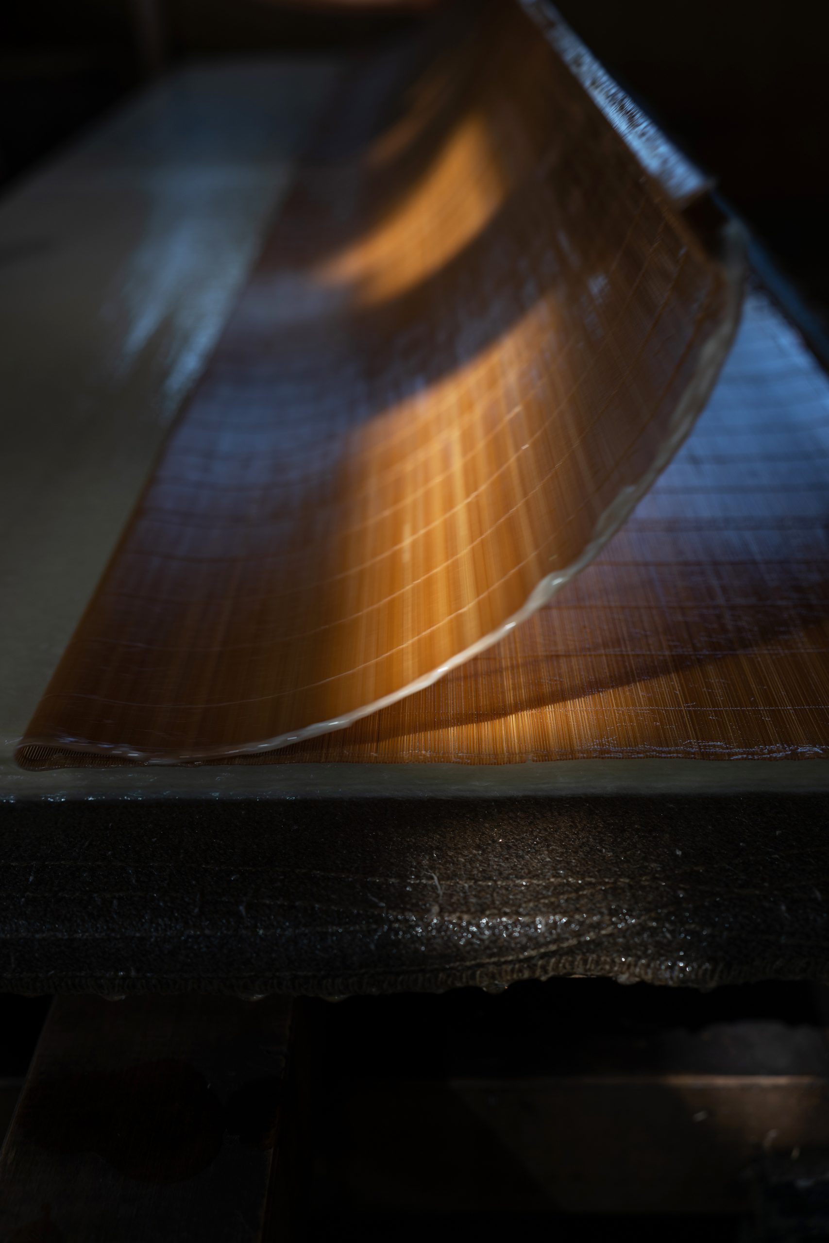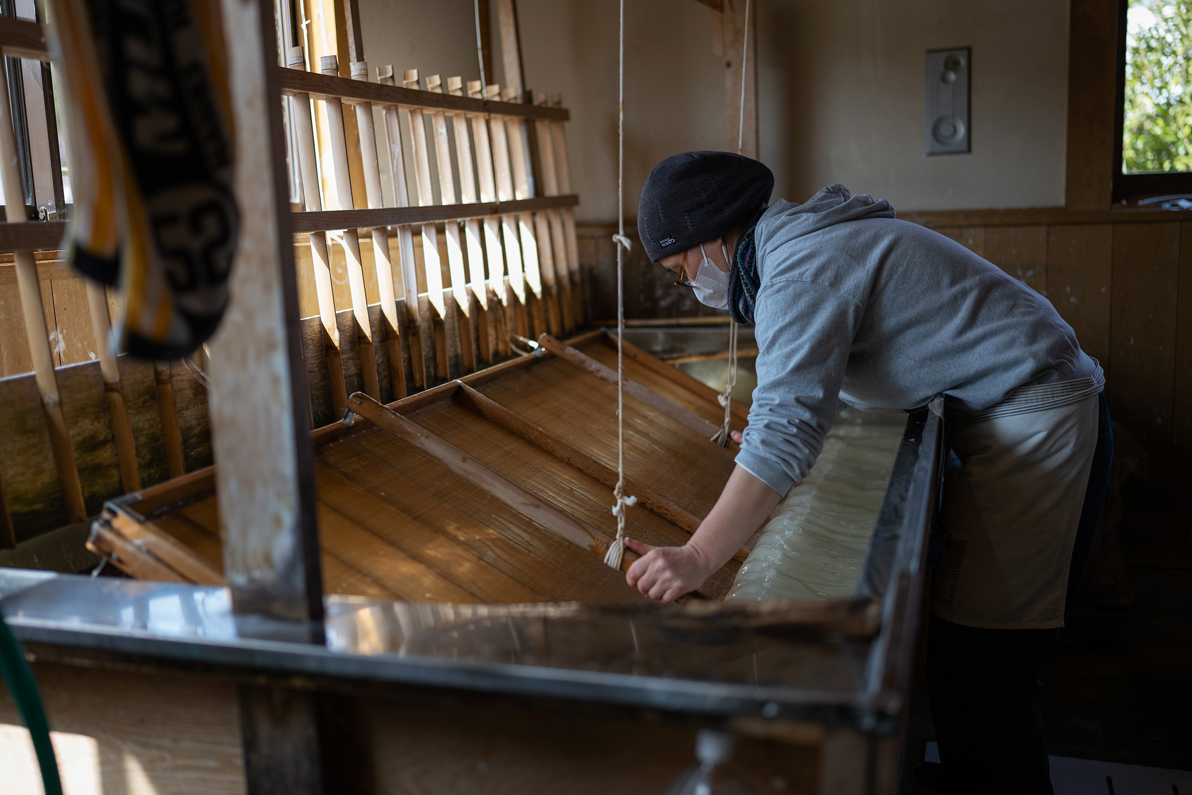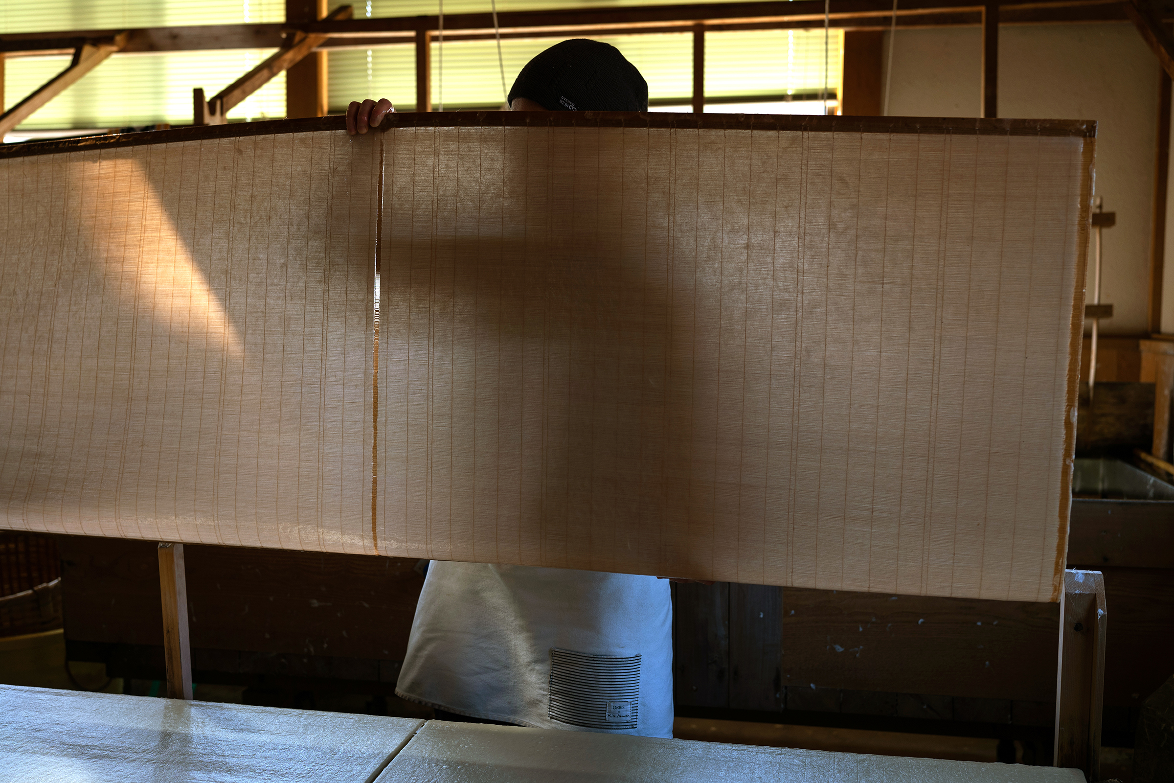 Paper and photography have been linked from the very beginning. Photography was born from the desire of people to preserve the image the camera obscura displayed. Paper is the way to fix forever what the camera saw only once. I am really grateful to have had this opportunity to document the washi making process in this small workshop. Everything there was perfect for photography. Firstly, because of the natural light used to check the paper's quality, and secondly because of the precise and repetitive movements needed in washi-making. As a photographer I have to be invisible in these situations; I'm there to document, in the most natural and candid way, how the people work and use their workplace. That's why knowing my lens and my framing is the most useful skill. I can join in the movements; I don't have to think which lens I should use, which distance to stand. I know all that so I can work at the same rhythm as the washi maker. As he is moving, I am moving, too. When I embrace this tempo, I can capture the image I want.