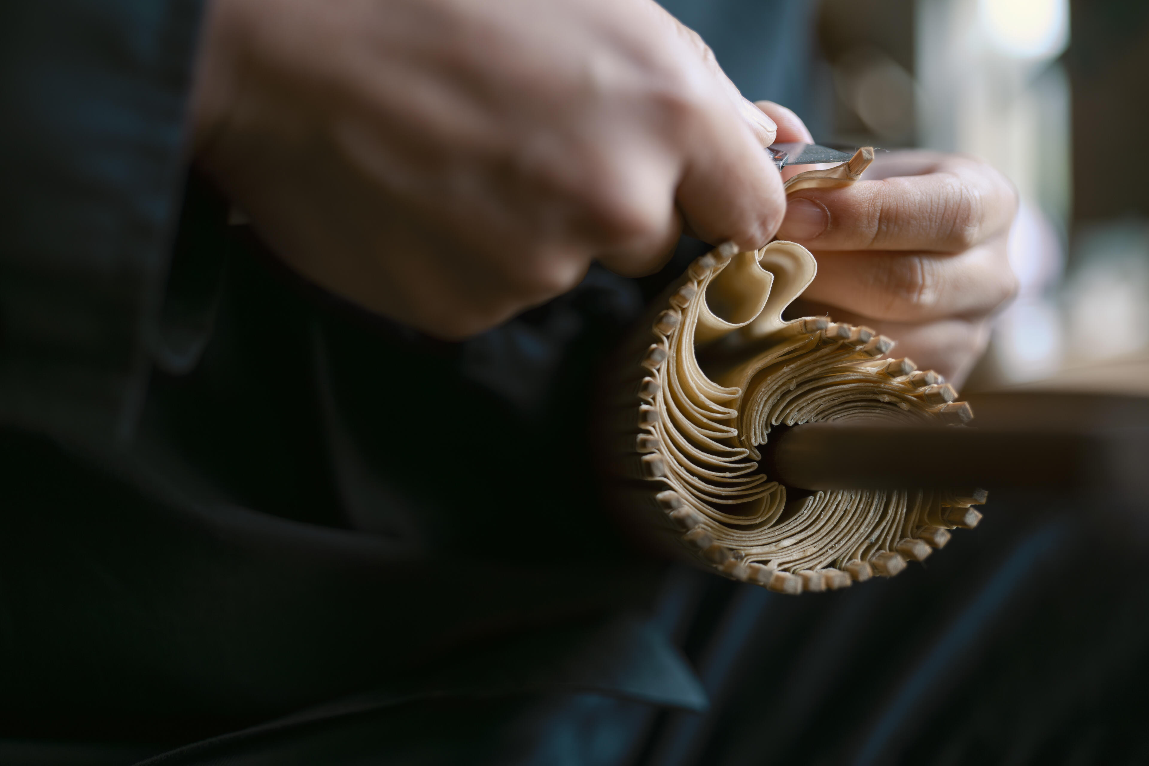 It is worth noting that the focusing performance of the Sigma 35mm F1.4 DG II | Art at wide apertures far exceeded my expectations. Traditional craftsmanship involves long processes, yet many critical actions occur in an instant. Moments such as splitting the umbrella ribs, wrapping fine threads around them to secure the structure, or making precise cuts along the umbrella edge with scissors all demand a lens that can focus both quickly and accurately.
