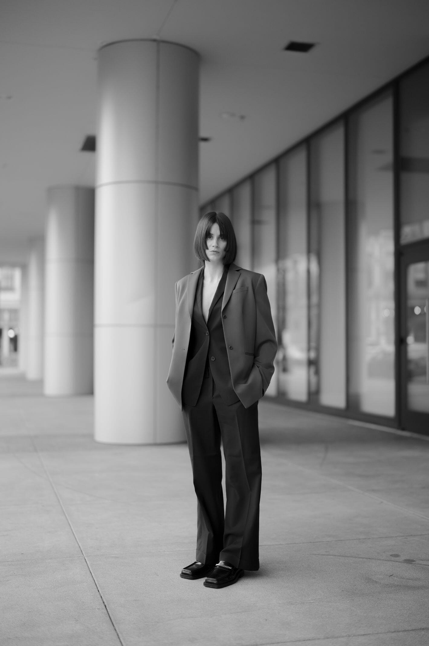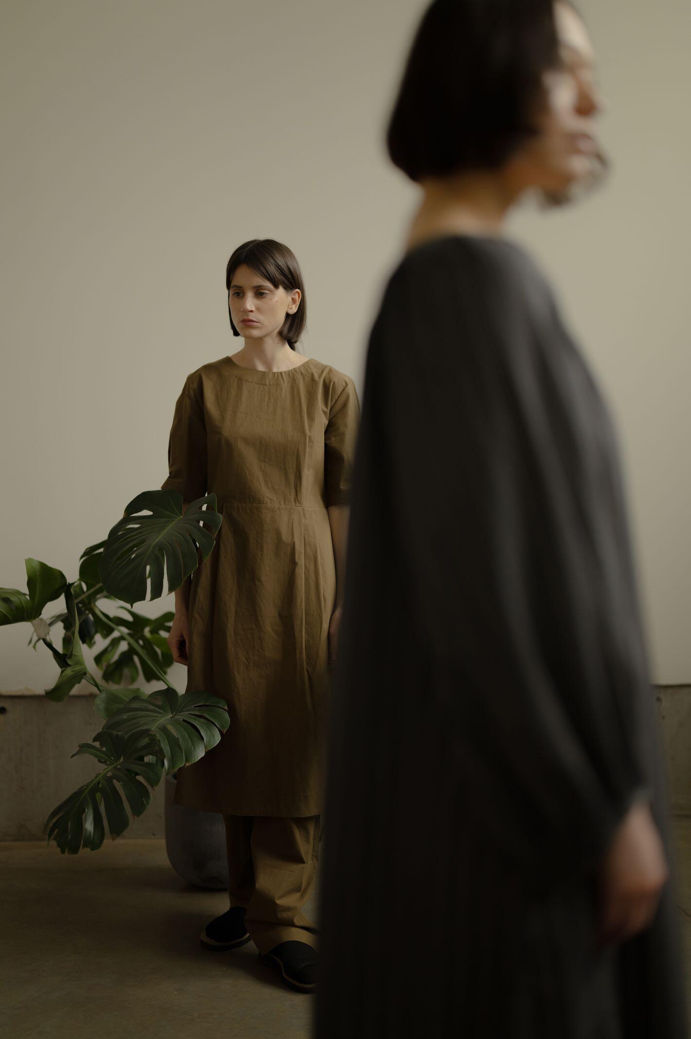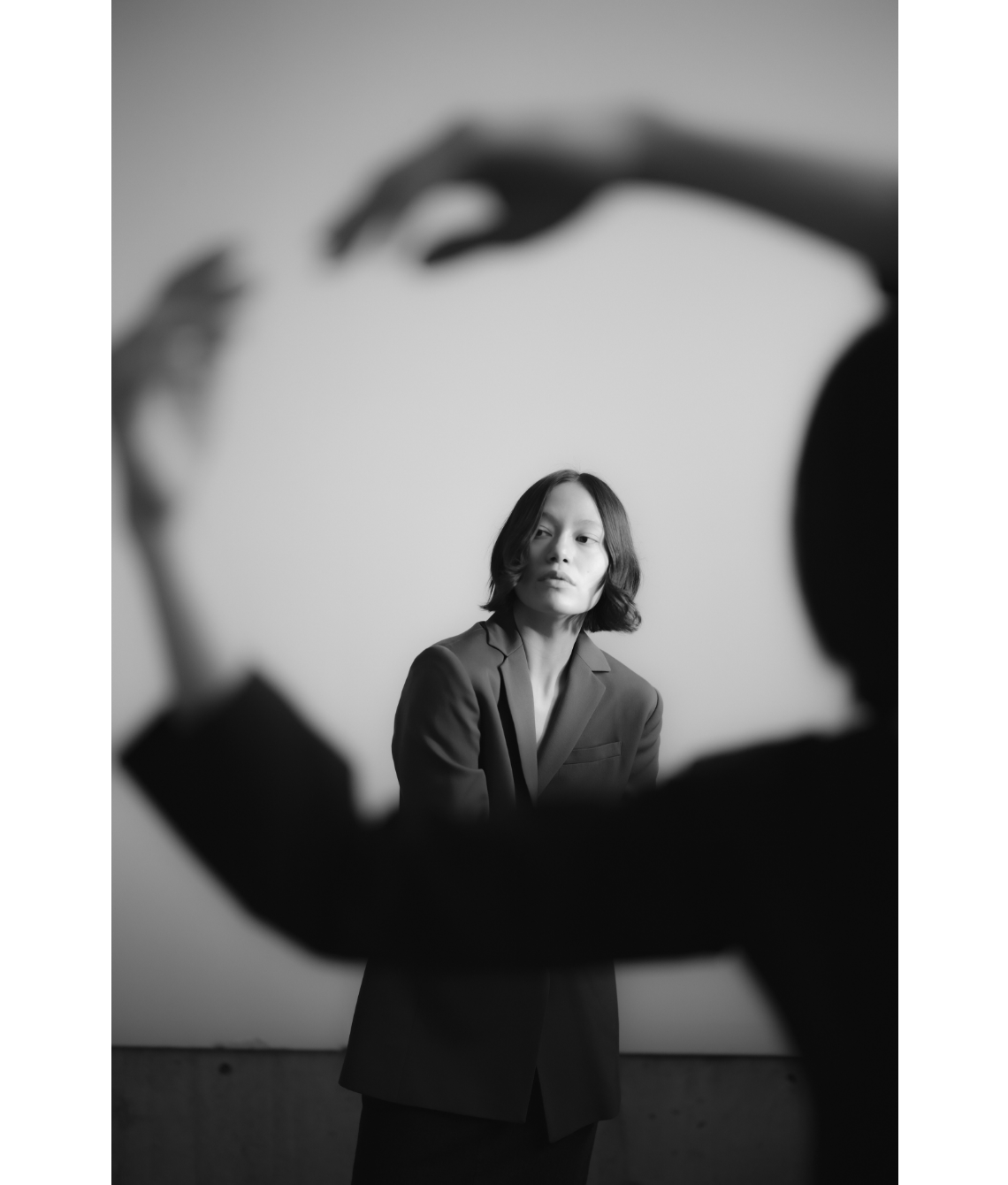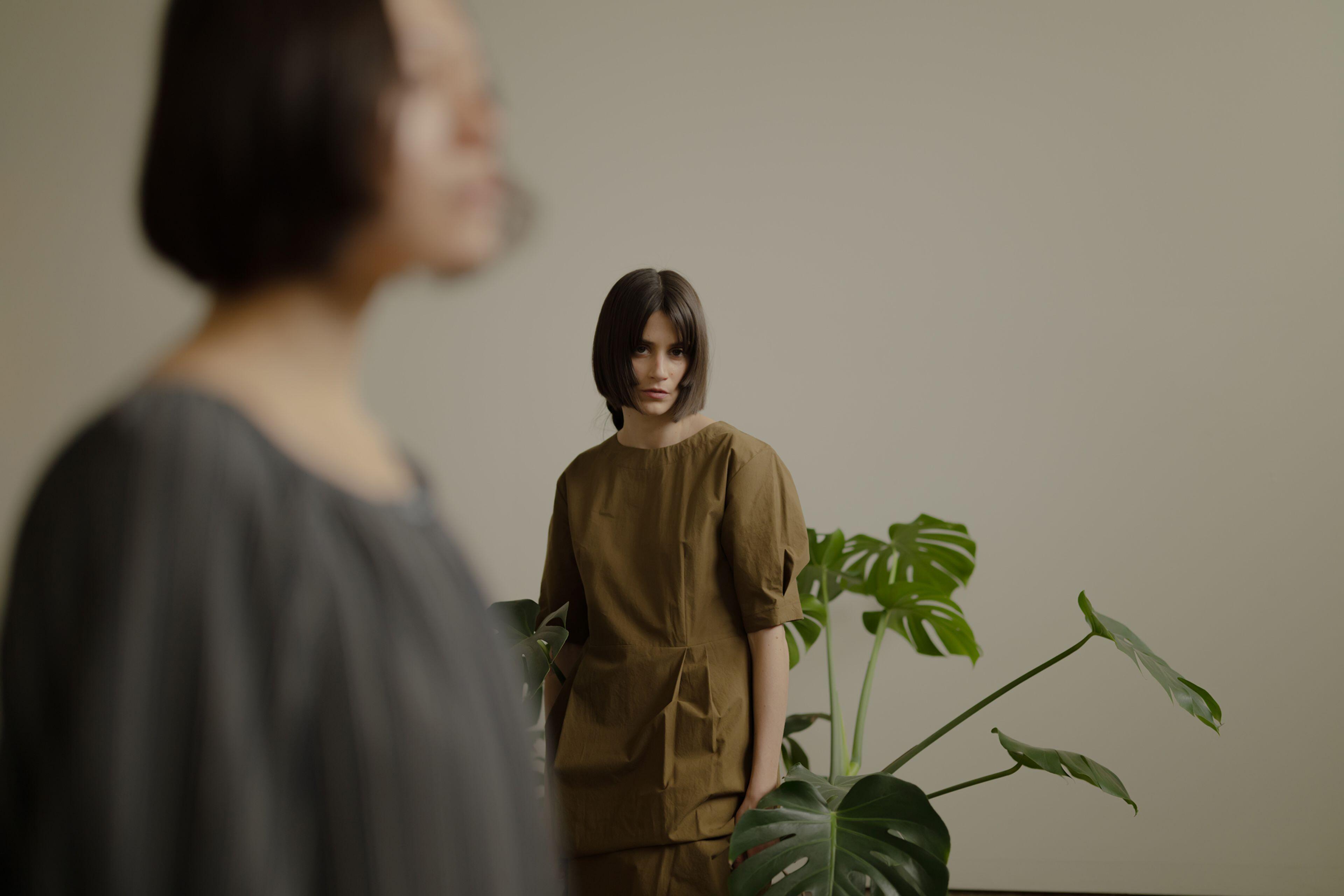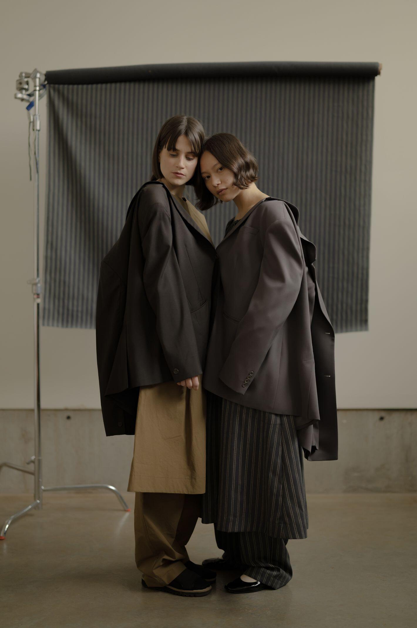 I shot with two subjects (Iona Catherine & Kaya Noteboom) as a way to capture individual talents, but also combine them in the frame to play with foreground, background, and the visually pleasing result of these features when shooting at a wide aperture. A mix of natural light and constantly controlled lighting allowed me to explore both situations within the same environmental parameters. Iona Catherine explored a styling concept & art direction, matched with backdrops and production design responding sometimes directly to the garment and its tones and patterns as a way to create a matching environment, which also contrasts with subjects when shot wide open.
