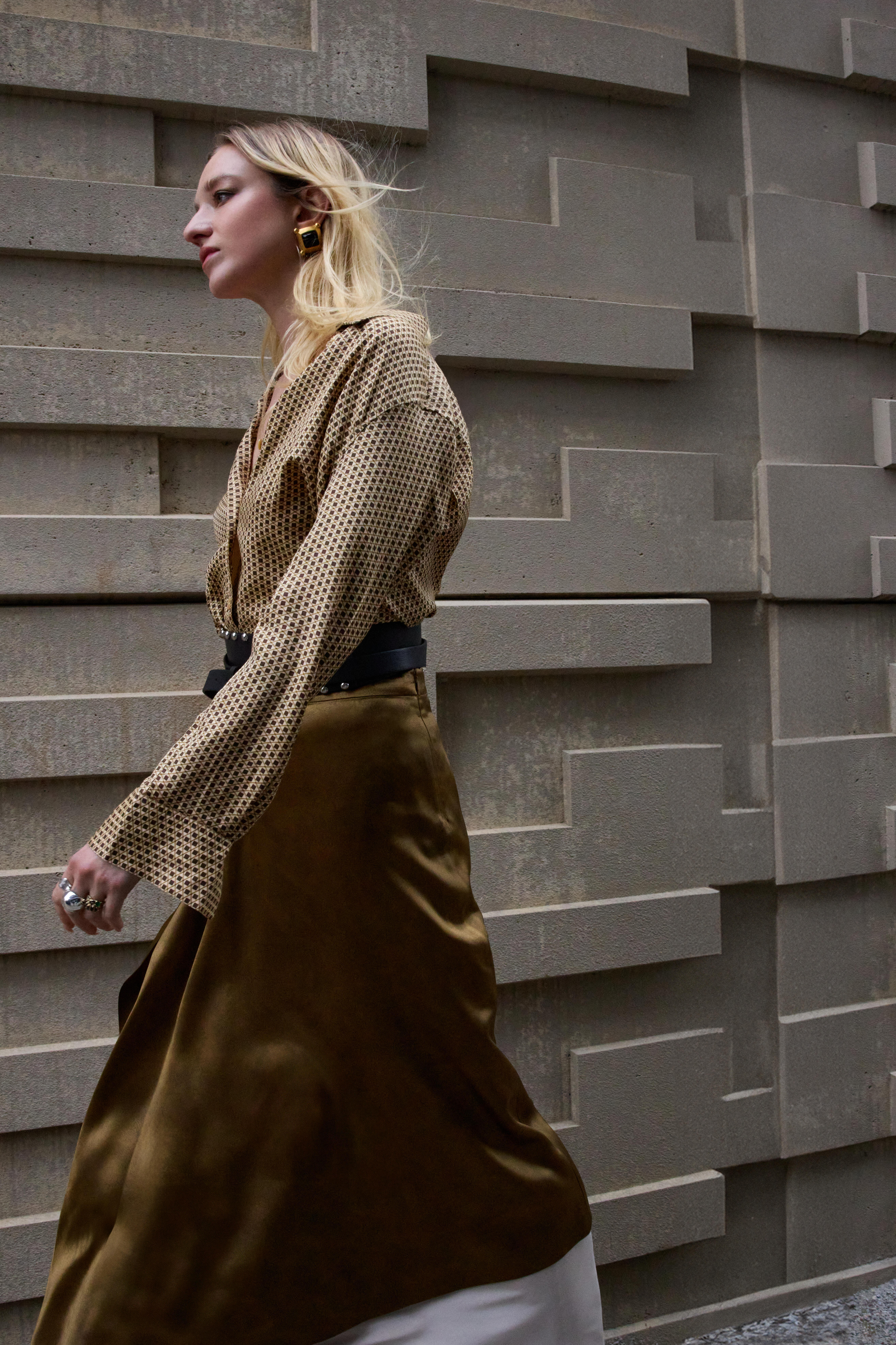 Unlike film, still photography lacks the benefit of dialogue or music to set the tone, so the location and clothes take on an even greater role in storytelling. To help convey this story, I collaborated with some dear friends. Our model Joan embodies the modern woman – complex, confident, sensual. She is both elegant and rebellious, a captivating enigma, much like the women of today. Styled by Sasha, an extraordinary fashion stylist, Joan’s looks draw inspiration from Fall/Winter 2024 trends – a fusion of Ferragamo, Jil Sander and my eternal dream client, YSL. Additionally, I chose Miraki Life Studio in Toronto’s west end as our location because it’s hard industrial textures and artistic vibe create a stark contrast to the wardrobe. I wanted to take viewers back to the nostalgia of the loud, larger than life, 1980’s New York/ Studio 54 culture.