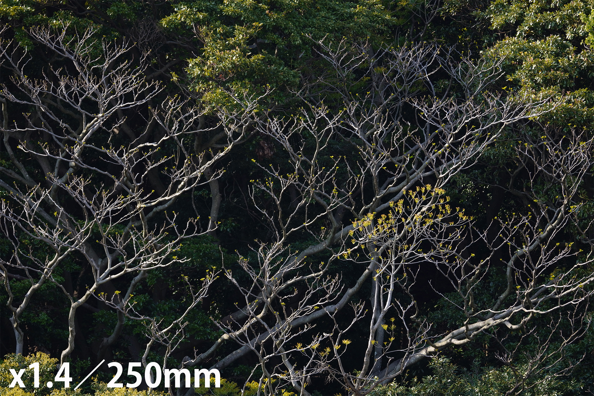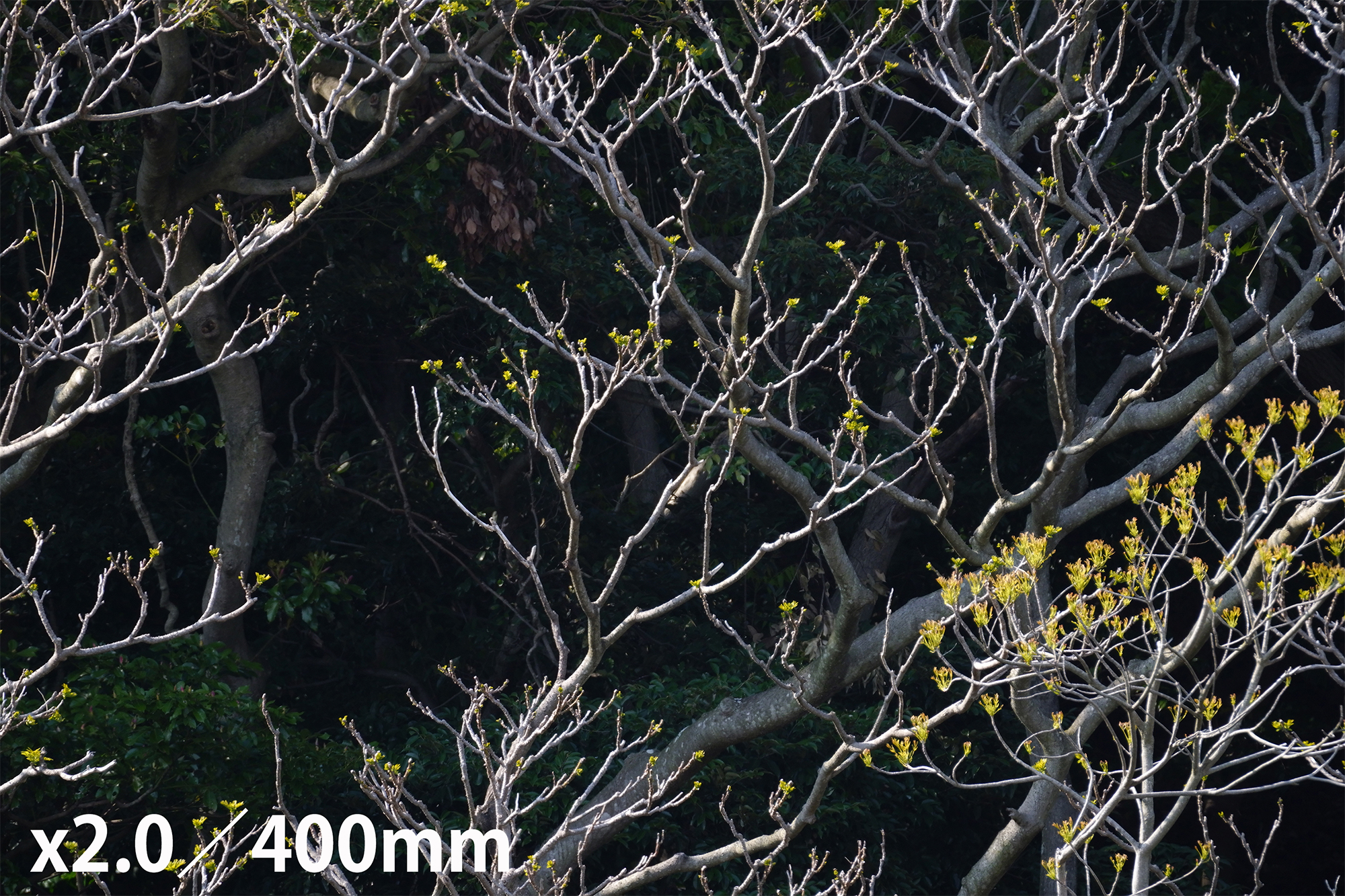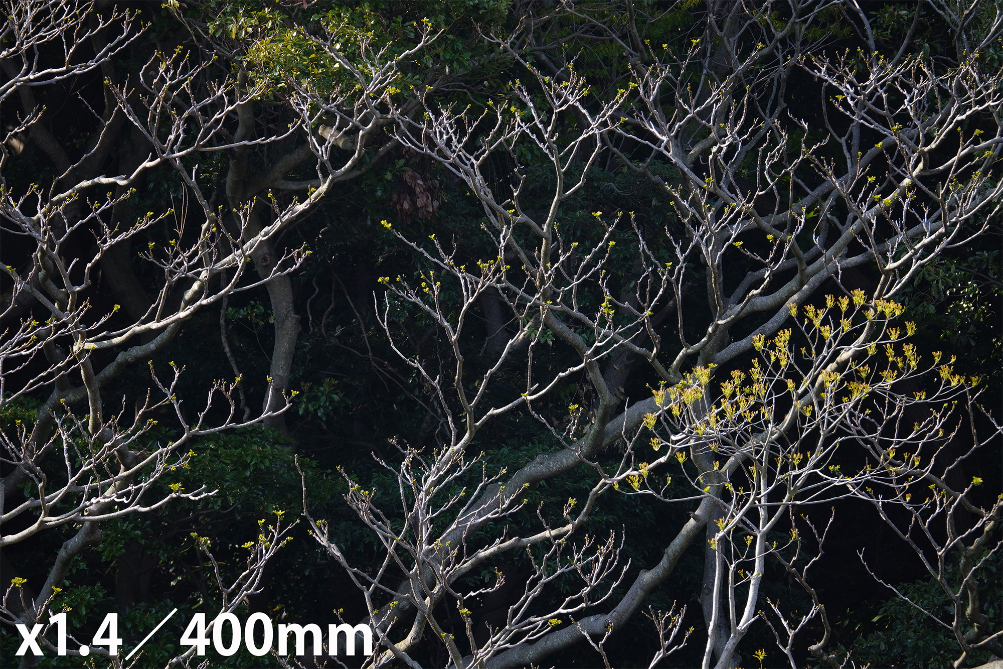 The samples below are shot from the same position at 100mm, 250mm, and 400mm. They were shot with no teleconverter, with TC-1411(1.4X), and with TC-2011(2.0X). Shooting range is surprisingly broad and the image quality is stable throughout the zoom range.