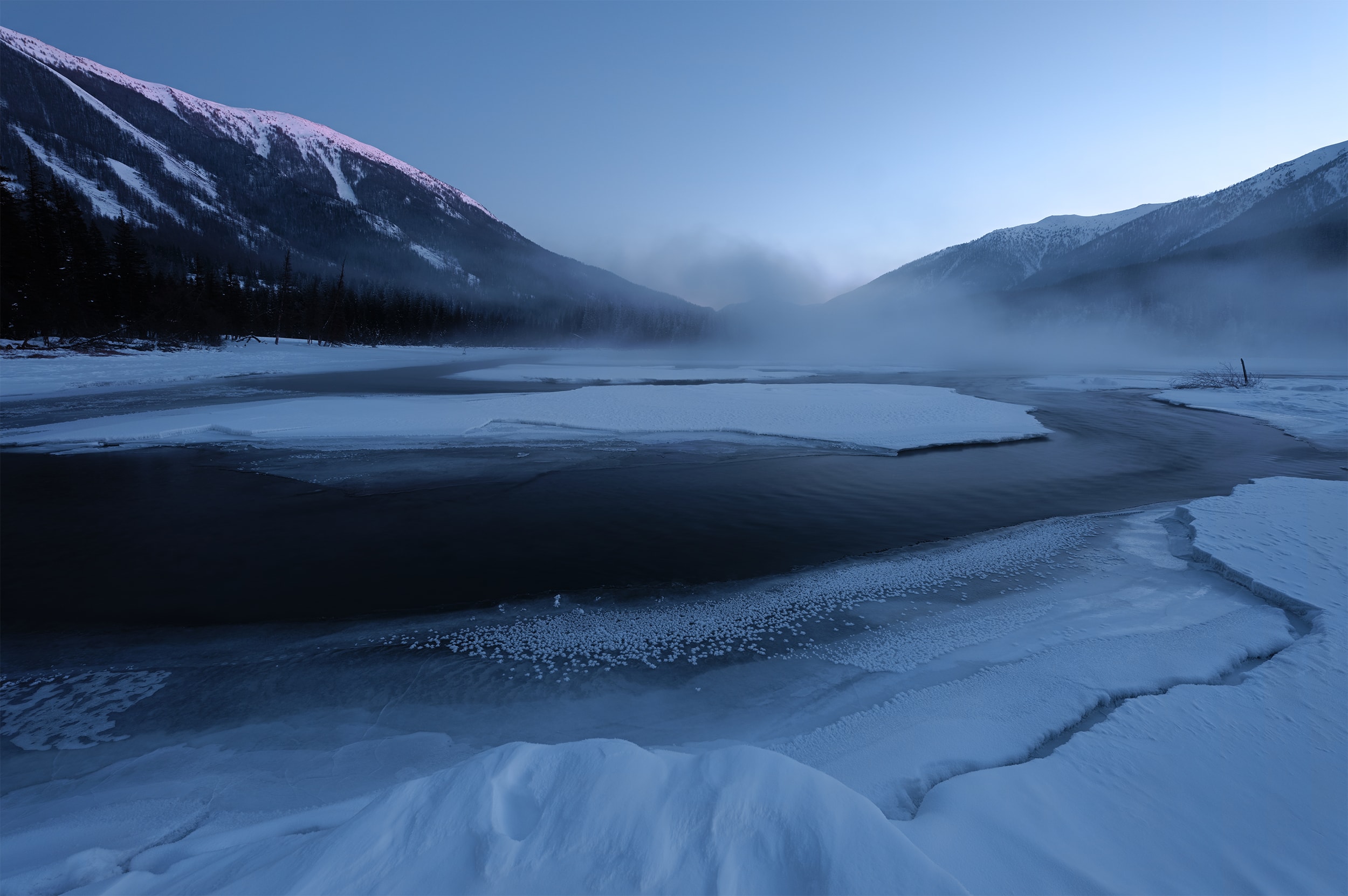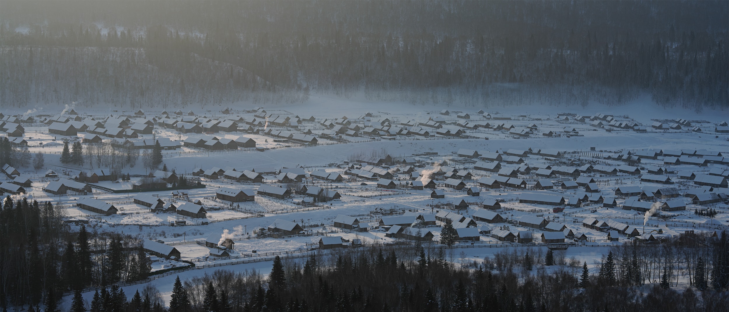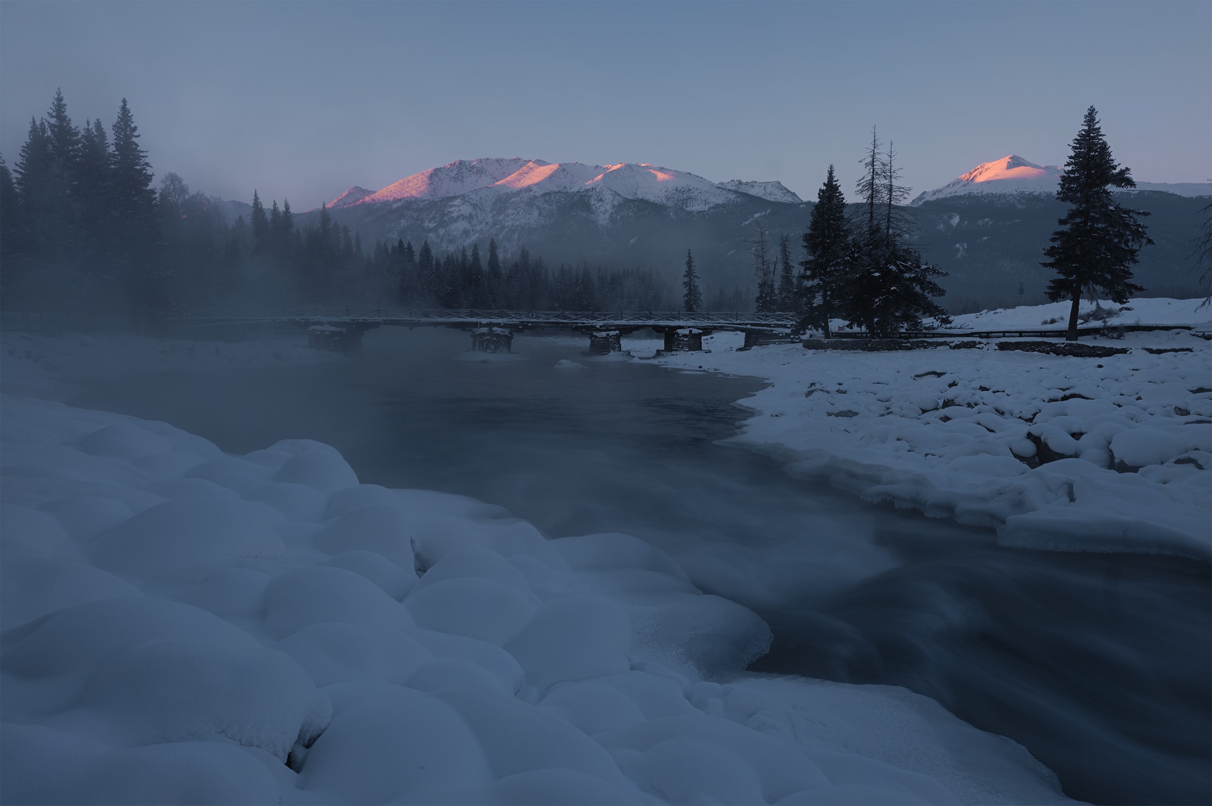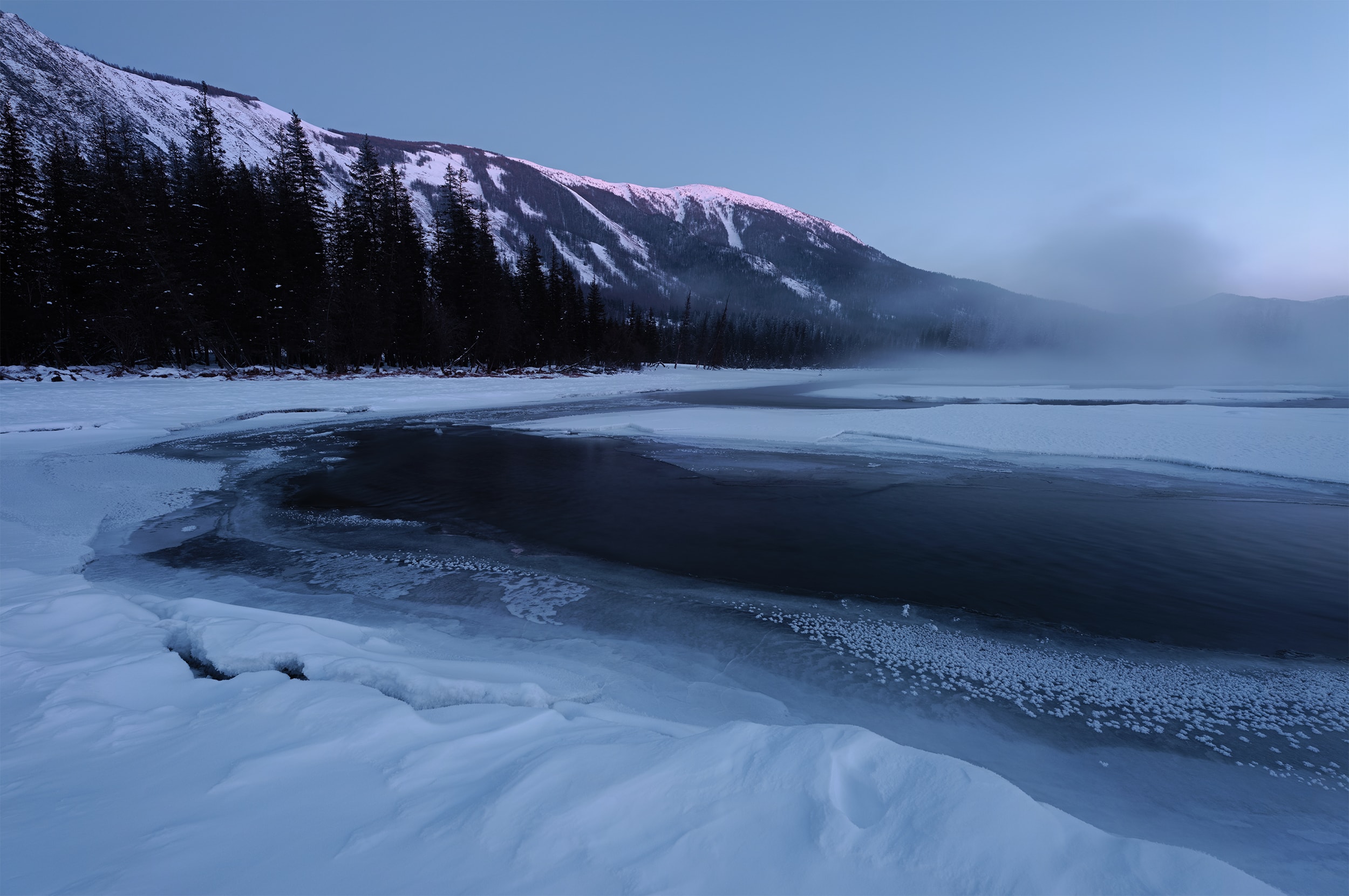 These photos are taken in North Xinjiang, China. Distinguished from the common impression of colorful Kanas Lake and Ili Kazakh Autonomous Prefecture, here it is covered with snow throughout the winter and the temperature is normally down to -40 degree. Because of this tough environment, photographers rarely visit here. Thanks to this extreme climate and spectacular geomorphologic landscape, it allows me to create refreshing photos. This perfectly matches with my philosophy on photography--pursuing sublime beauty of the world.