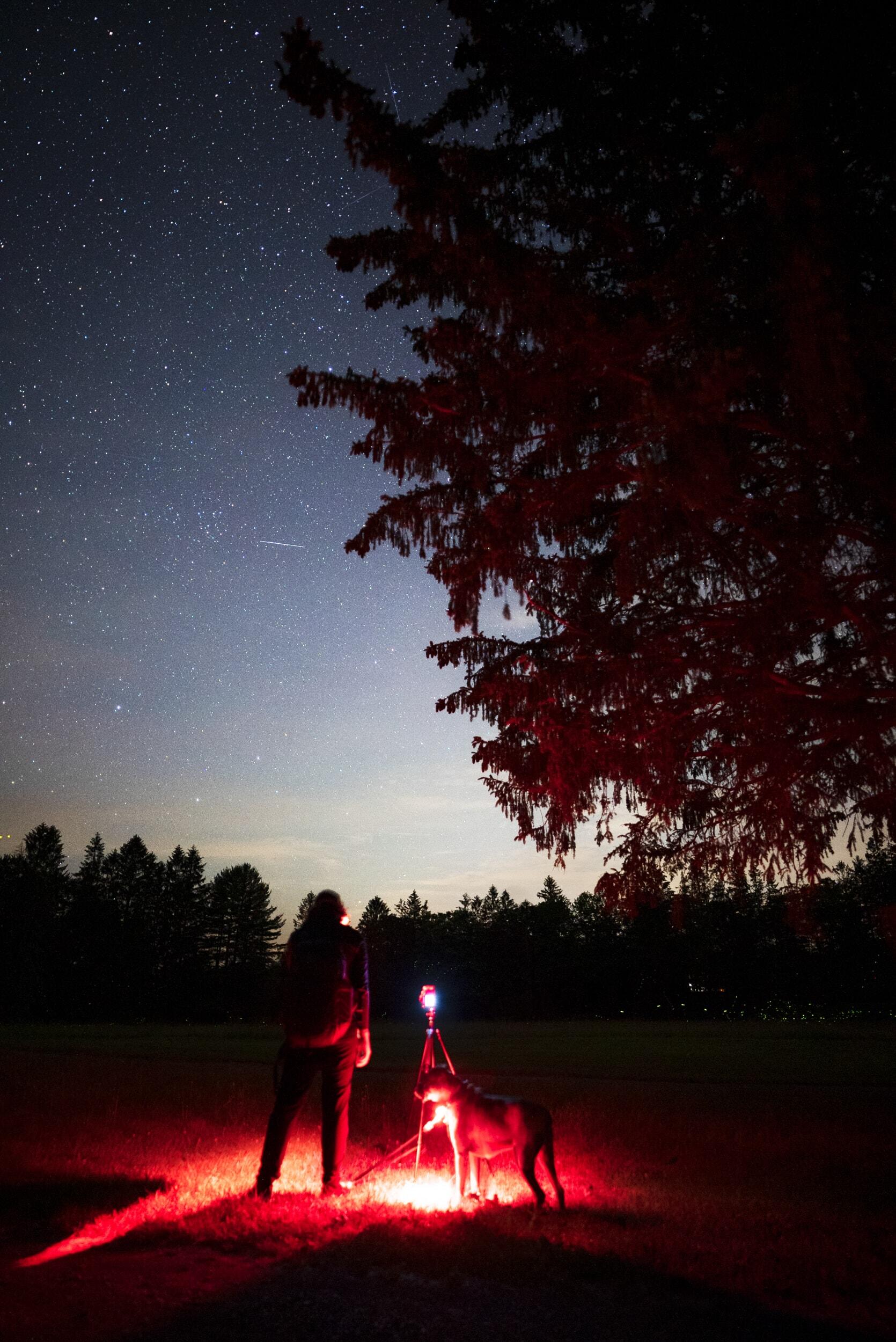 I captured a few images of Kona and I hanging out while waiting for the Milky Way to move into position to help commemorate our multi-day adventure. With his own red light equipped headlamp, I was easily able to adjust focus while using the lens at F1.4 and take advantage of the live view on my mirrorless camera. I'm still amazed at how well Kona has learned to stay still for these long exposures! If you could see my catalog of images, I probably ruin more frames by moving than he does.