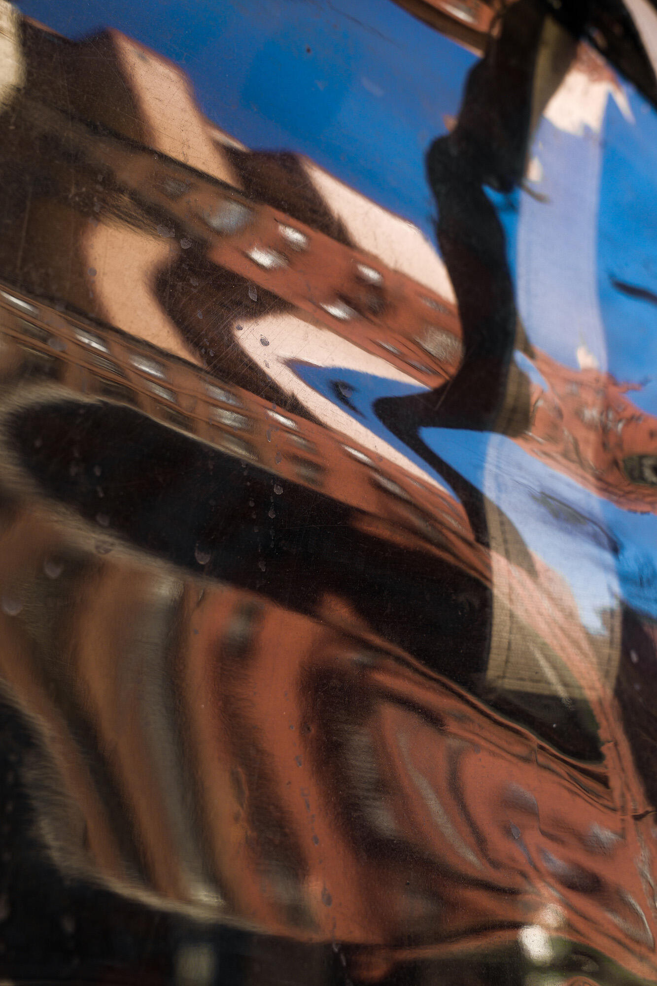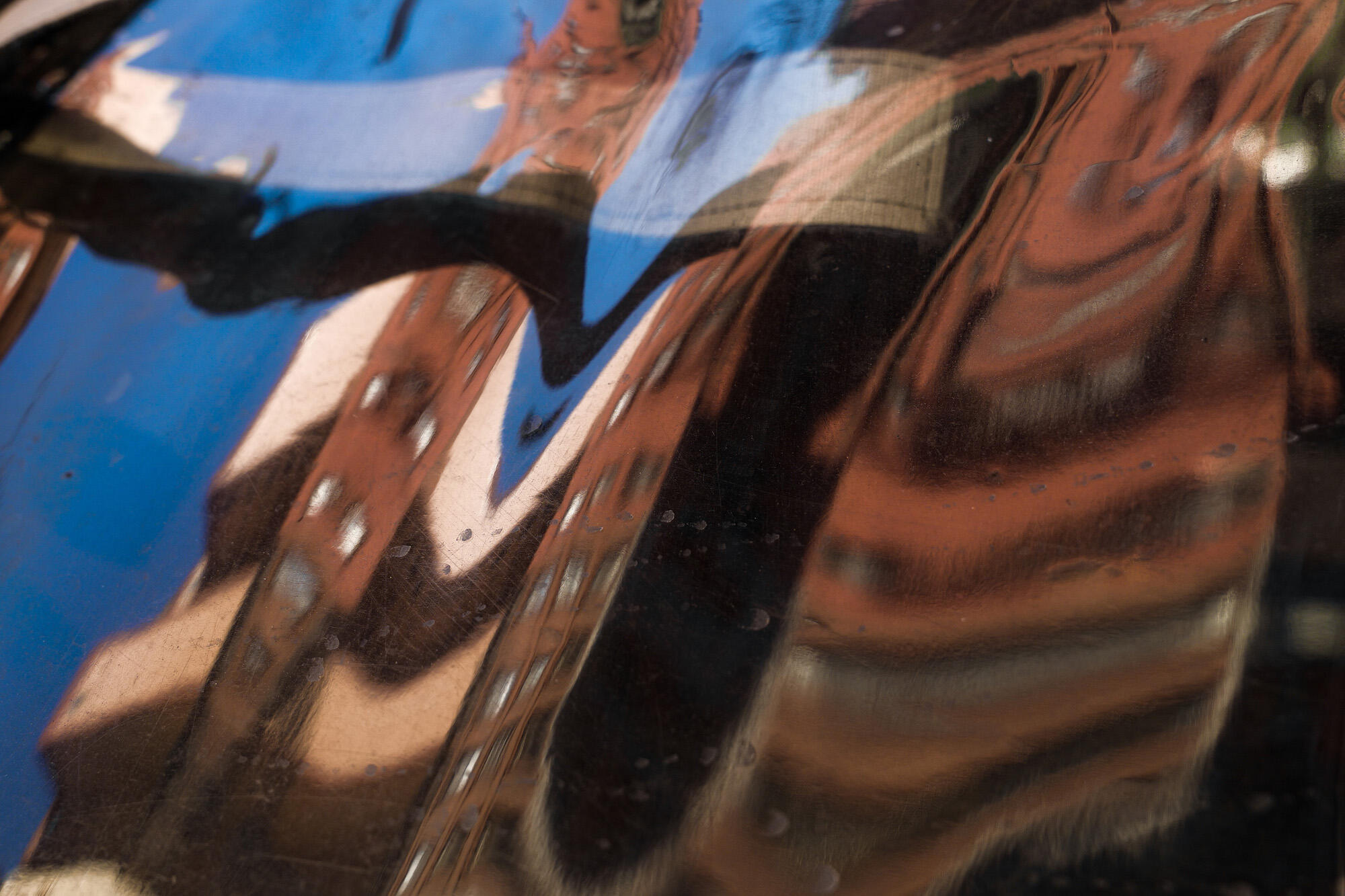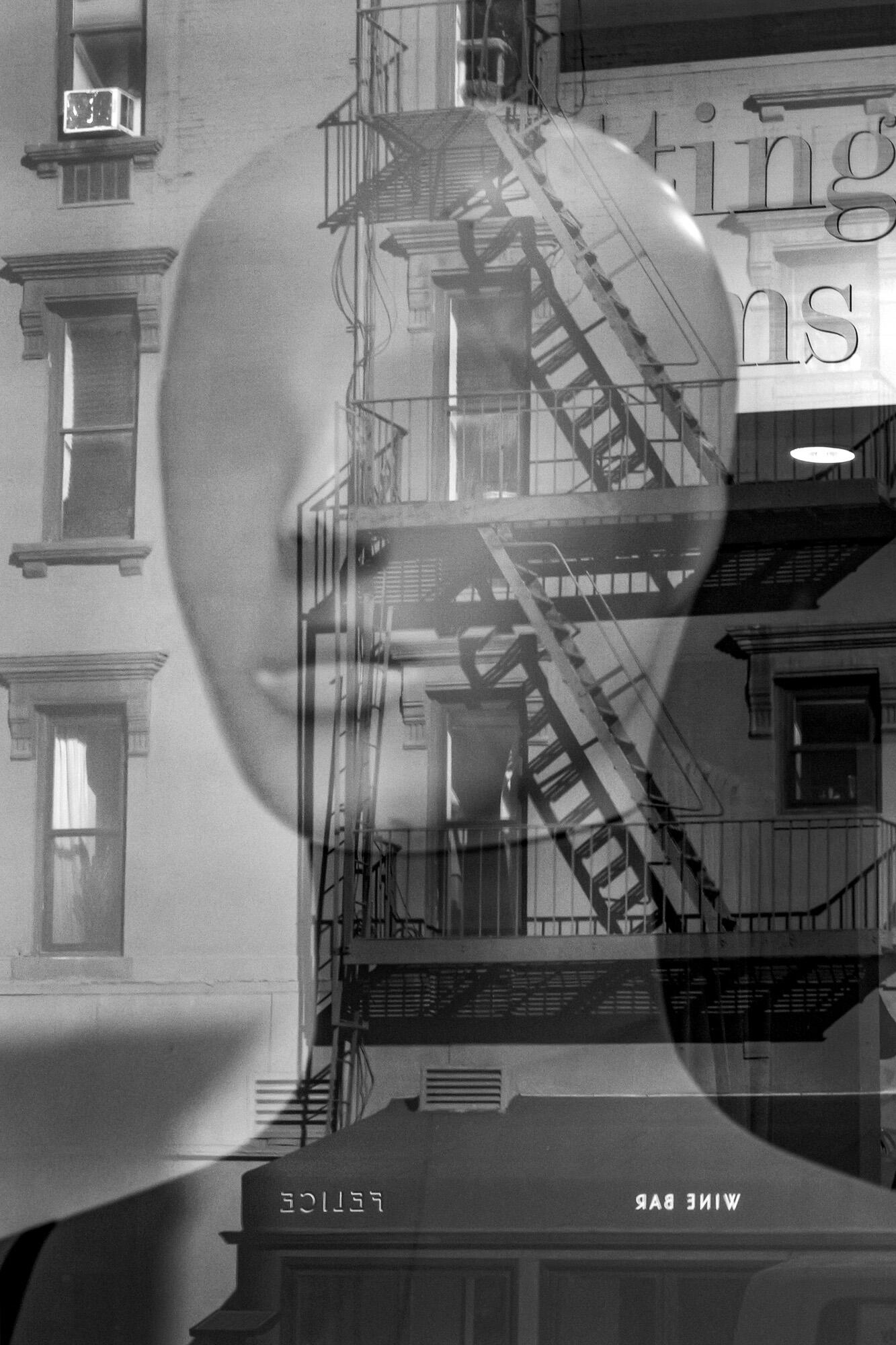 Their images exhibit an anamorphic, collage-like quality, often achieved by capturing objects distorted in reflective surfaces or by incorporating their own shadows to obscure or warp a scene. They are drawn to the visual density of big cities in their work and have recently published two books—one a personal project focused on New York, and the other a commission for Louis Vuitton featuring images taken in Seoul.
