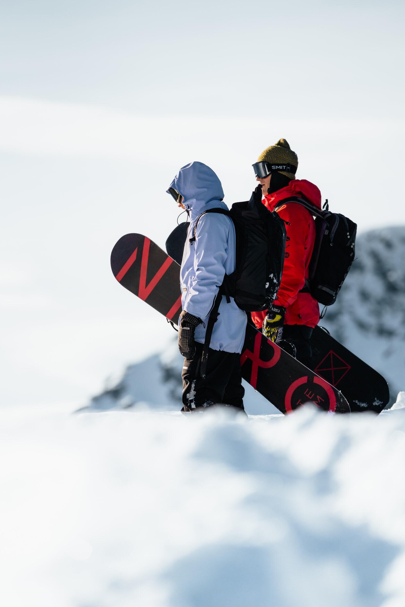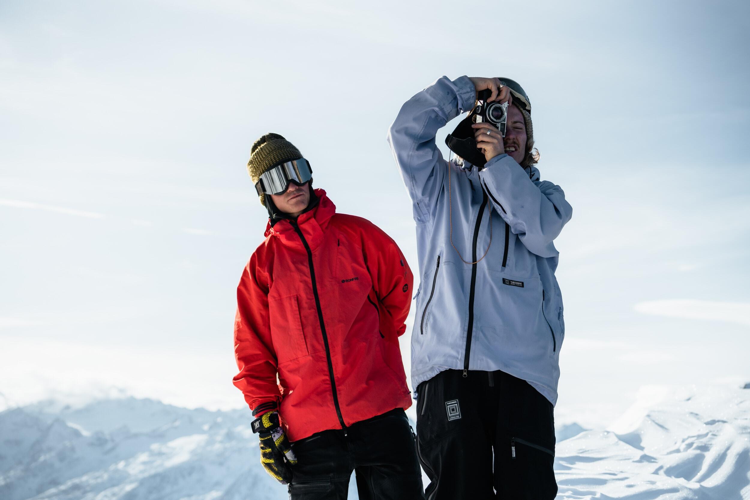 If you are looking to shoot some snowboarding as well, I can recommend you to not just pop out your tripod and sit there waiting for something to happen. You can of course use a tripod to be more stable, but before you even take a photo just grab your camera and walk around. Hike up and down, lie on the ground or stand up. Look for angles where you can isolate your subject, that's the important part. It gives you a way better image. The mountains are, of course, a great background, but they are also very busy to the eye when you try to focus on a snowboarder flying through the air. So the cleaner your images get, the better. A telephoto lens also helps you with that, since you can't fit everything in your frame. One final tip I can give you is to not be shy when it comes to asking questions. Talk to your athletes if possible. The more you know about what's going to happen when it's game on, the better. This can even be such a simple thing like the stance of your talent on his/her snowboard. Meaning if the right or the left foot is in front. I know, it sounds simple, but if you don't pay attention to this small detail you can have a perfectly framed shot only to realize you can only see the riders back for example. So as I mentioned before, talk to your athletes, ask them what they want to try, and work out a plan together. Oh and bring walkie-talkies if you can. It is so much easier if you can just talk to each other from a distance.