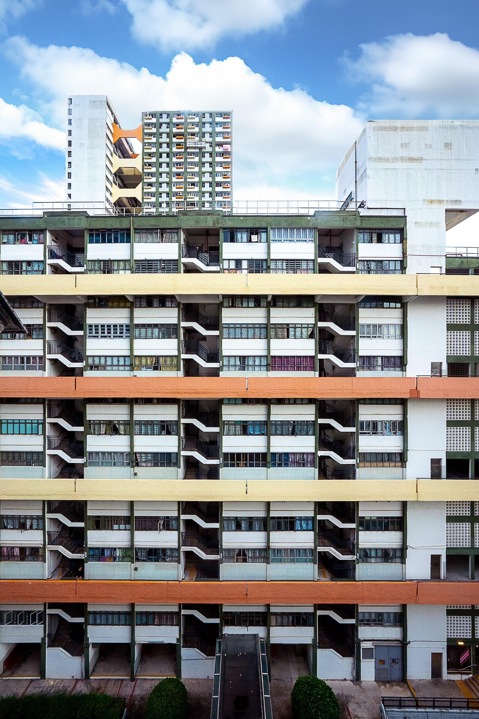 I'm often grateful to have been born into a happy family. Since I was a child, our family members would gather at my grandparents' house every week. These have made up my fruitful childhood. This series of photos was taken in their housing estate, where there are the happy moments of my family and my fond memories of Hong Kong. The 'Twin Tower' design is a distinctive feature of Hong Kong public housing, and it can be seen in many film works. In addition to my grandparents' estate, I also visited the nearby 'Cho Yiu Estate', where the twin towers are another scene. These architectural features no longer exist in Hong Kong's newly established public buildings over the past 30 years, which is quite sad. Visiting the community to take photos always makes people miss the good old days, and these memories are often another source of inspiration for me.