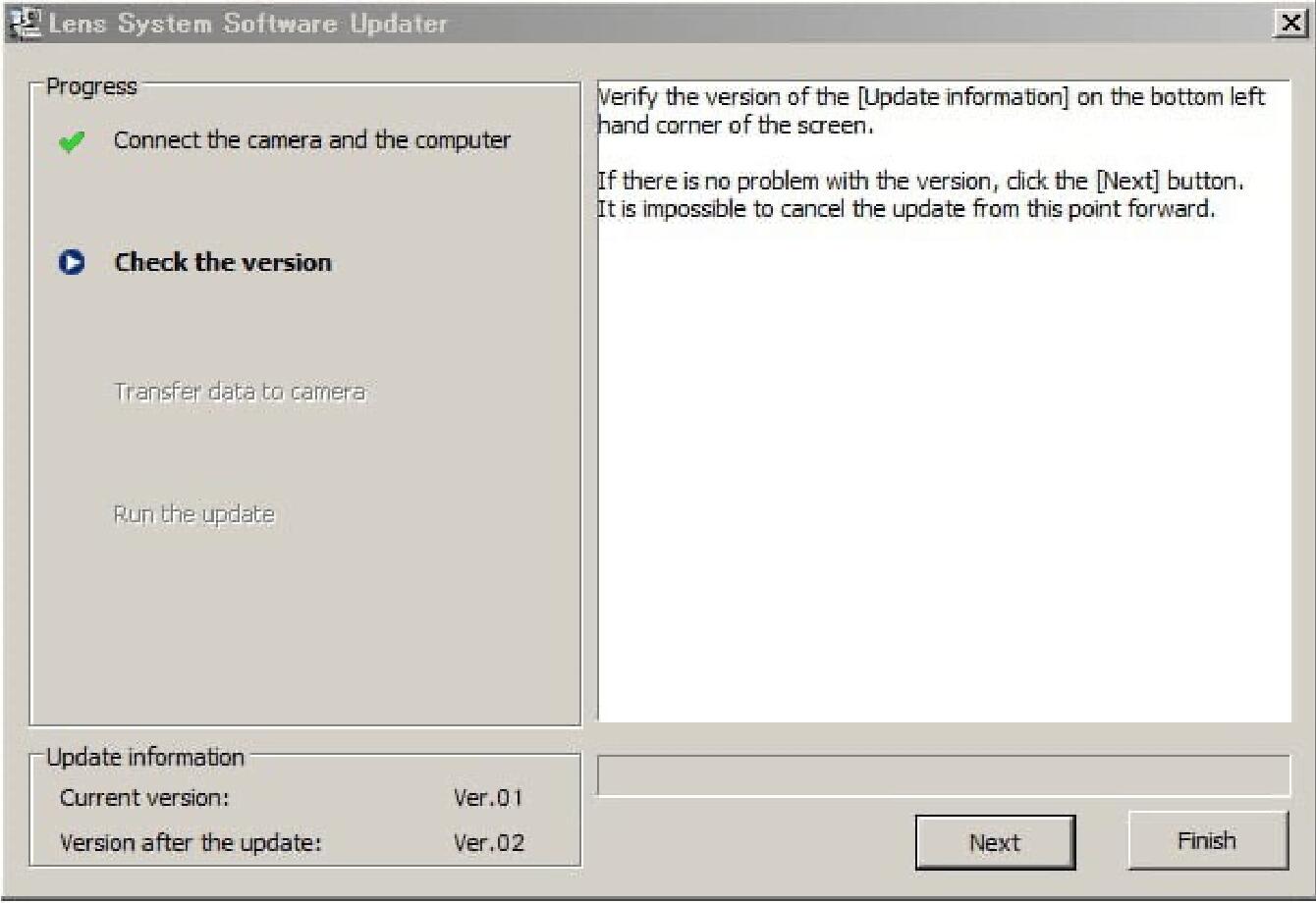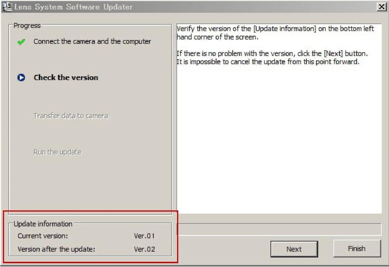 If the lens firmware is already Ver. 02, this process can be skipped.