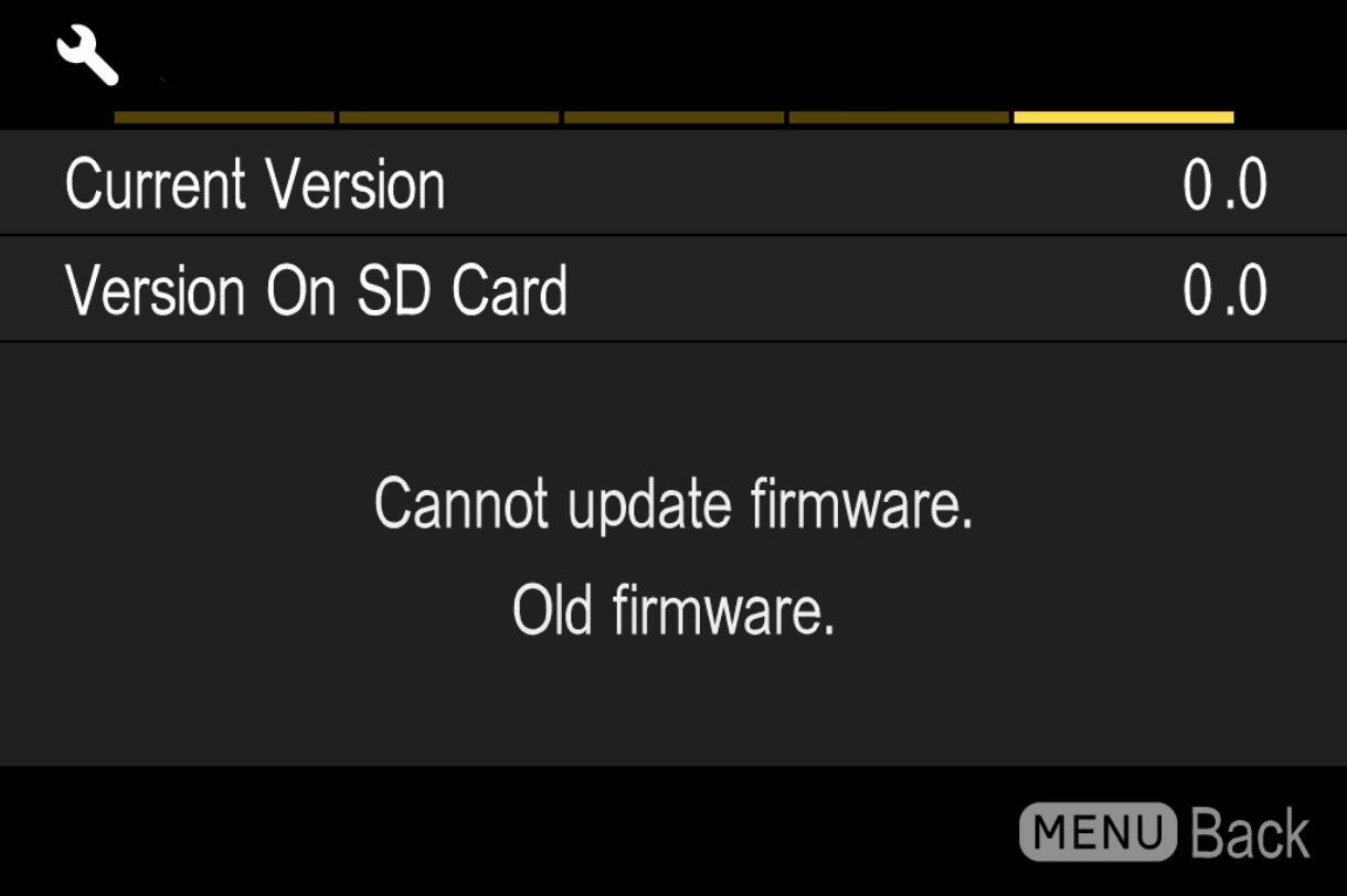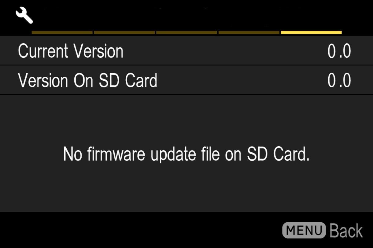 - The firmware update file is not installed in the card, or not in the appropriate directory.