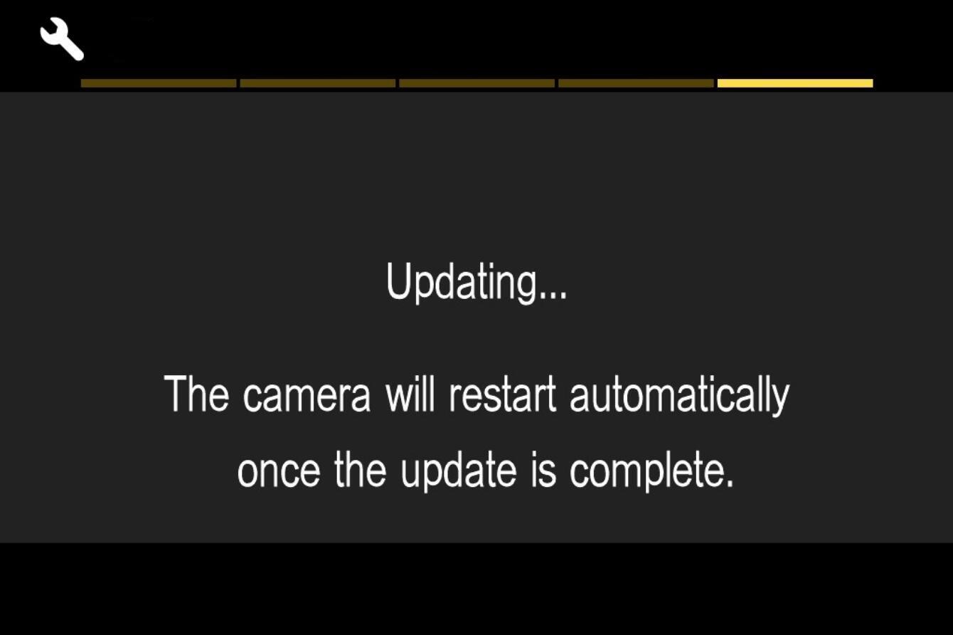 * Do not operate the camera until the update completion message appears.