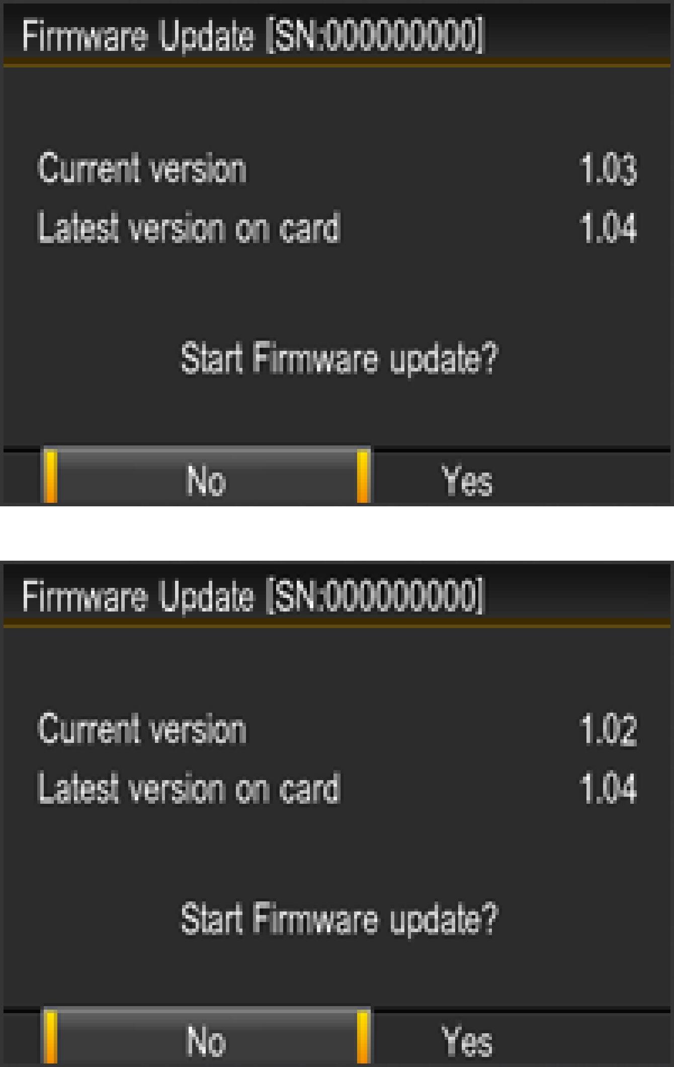 Select “Yes” and press OK button to start the firmware update (usually it takes about 3-5 minutes to update).