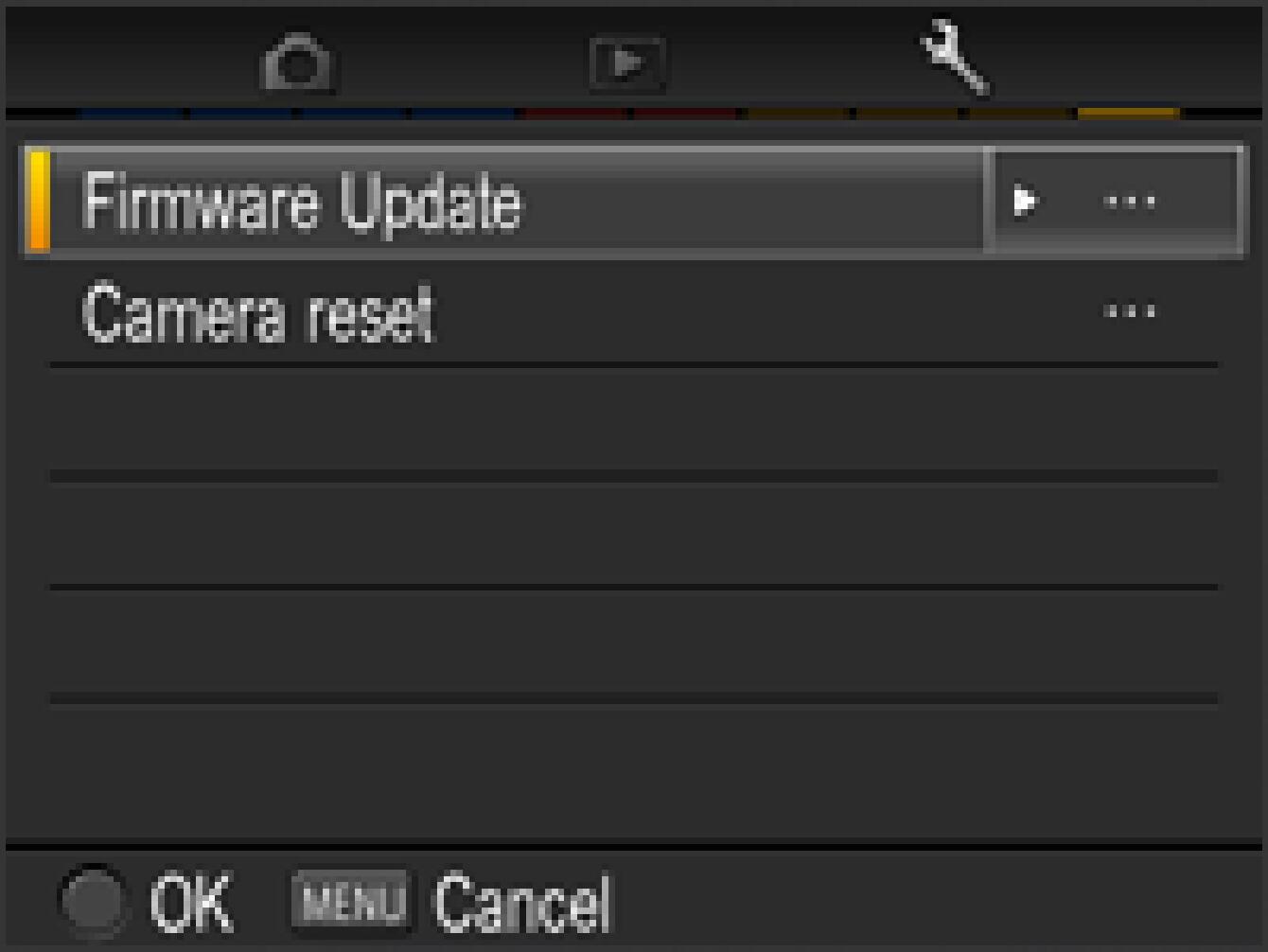 Select the “Firmware Update” from the Set Up menu and choose “Current Version” to confirm the firmware has updated to “Ver.1.04”. If “Ver.1.04” is displayed, the update is complete.[If the current firmware version is Ver. 1.02 or earlier]