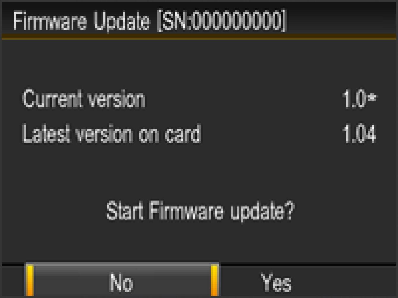 Select “Yes” and then press the OK button to start the firmware update. Firmware update will now start. (It takes about a 3 minutes to update.)