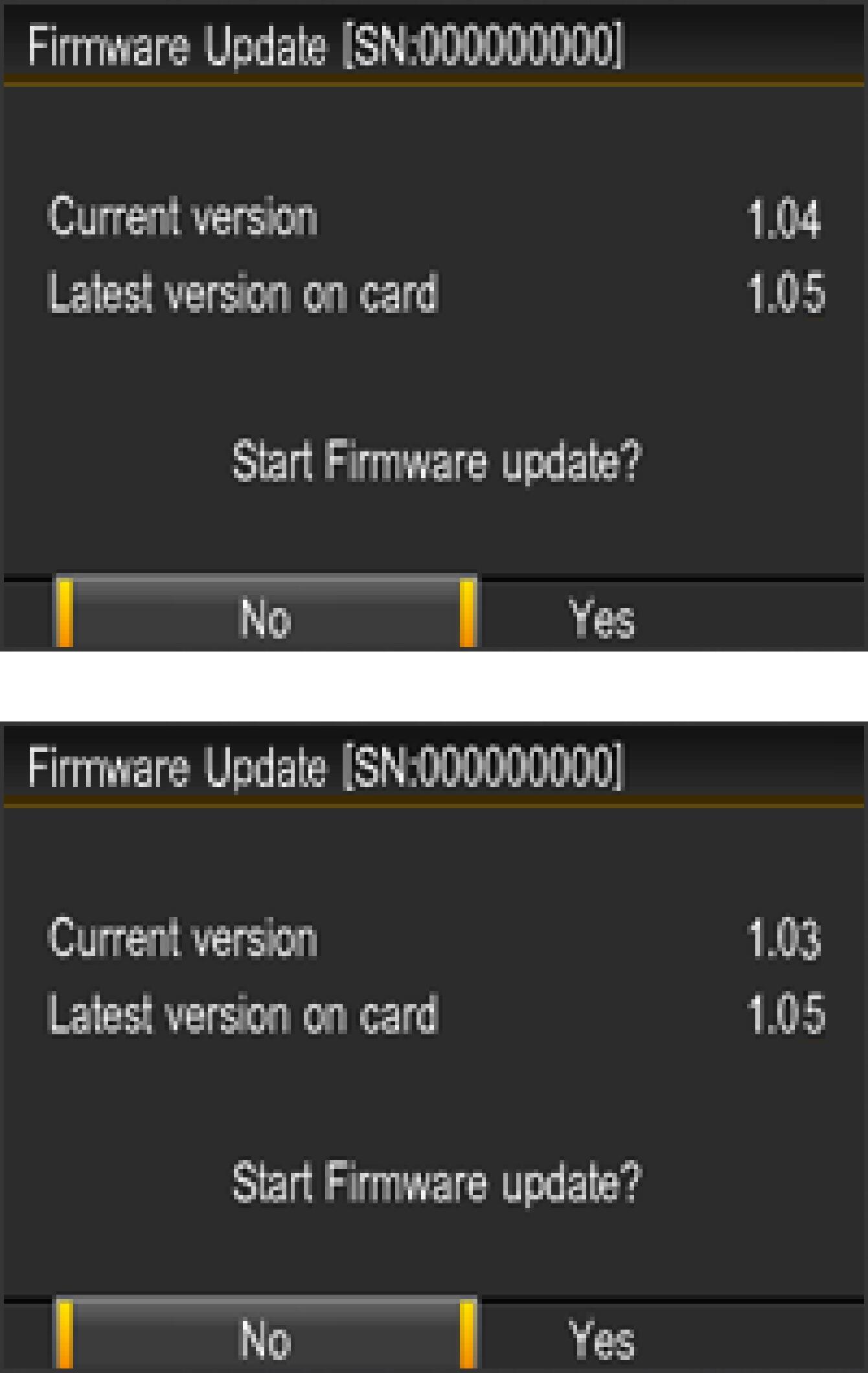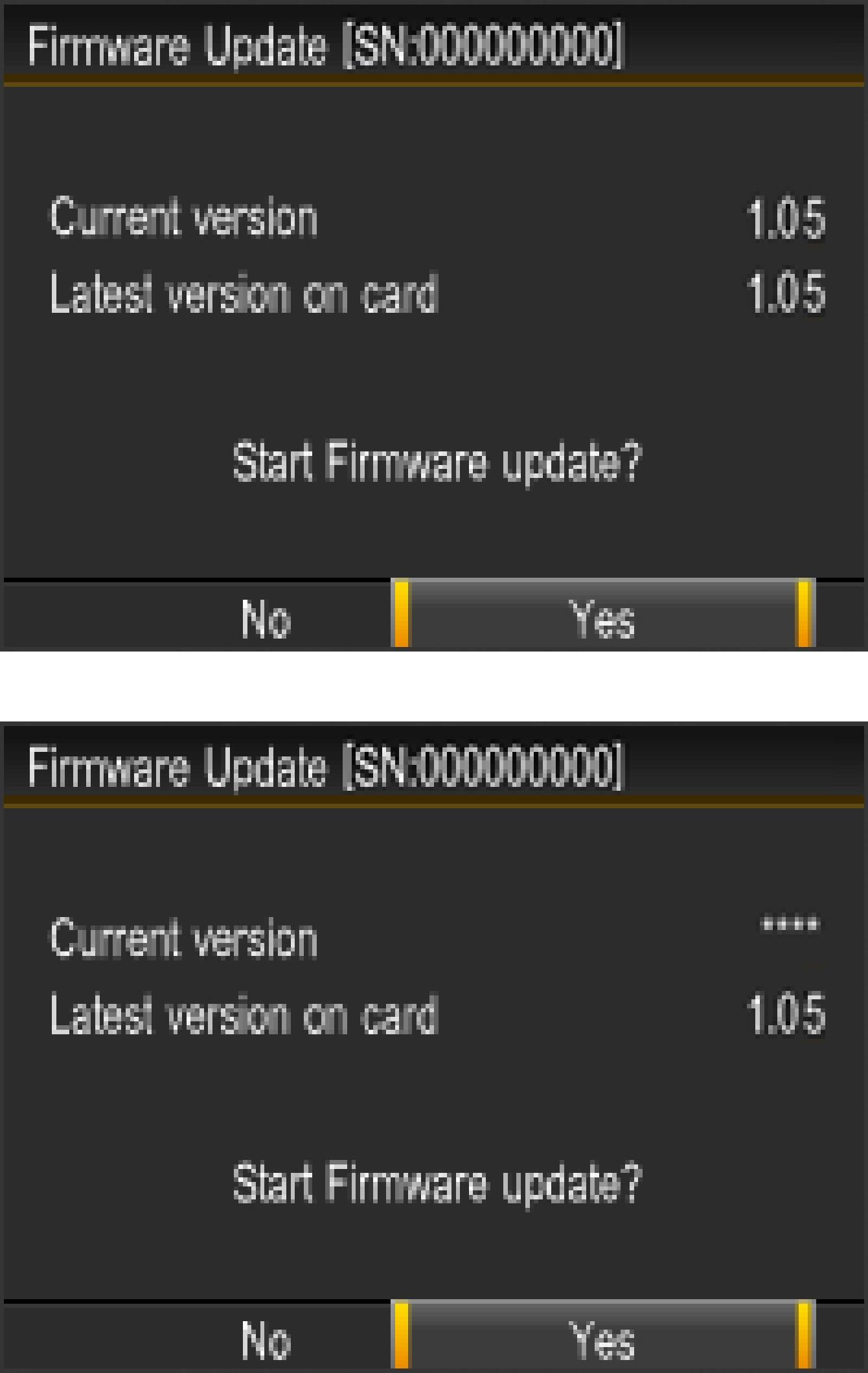 “Start Firmware update?” message will be displayed.