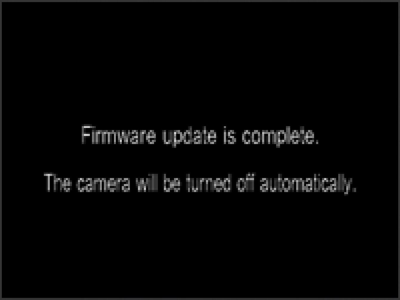 When the message “Firmware update is complete. The camera will be turned off automatically.” is displayed, the update is complete.