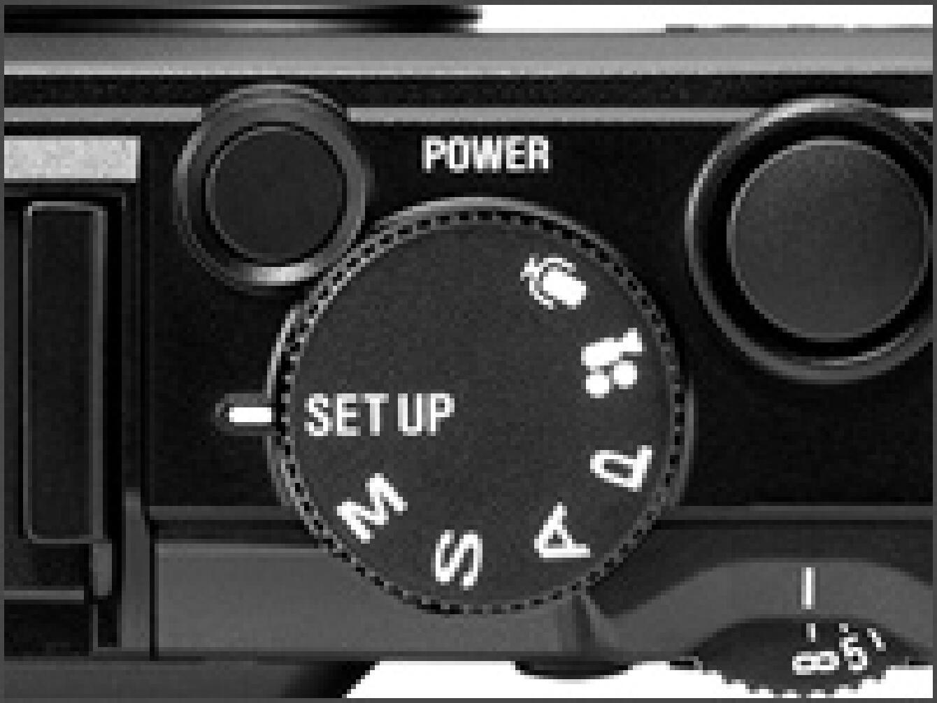 Put the “Mode” dial in the SET UP position and turn the camera on.