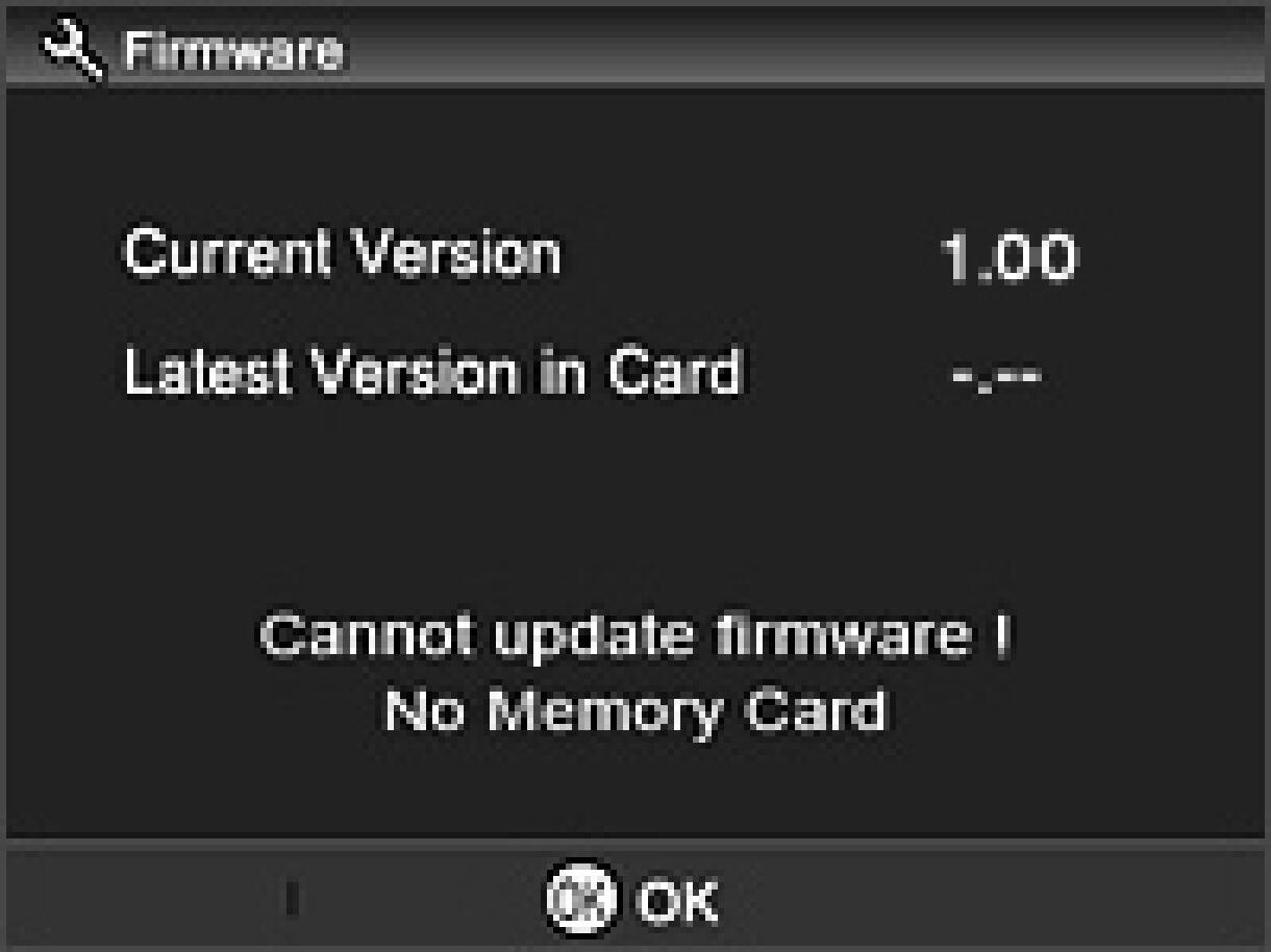 - No Firmware update file on Memory card * The firmware version will be displayed like“-.--”.