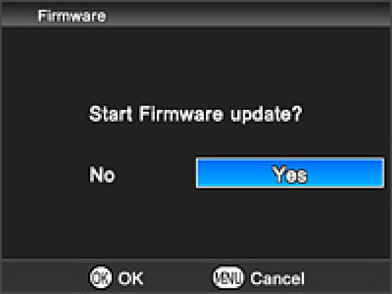 Press the OK button to start the firmware update. (It takes about one minute to update)