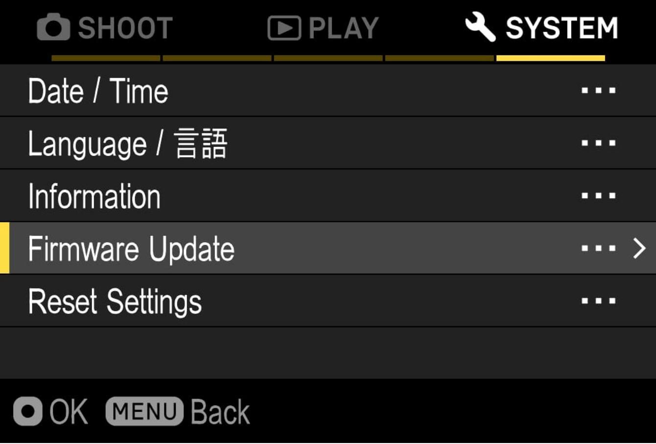 Check the “Information” version in the setup menu and confirm the camera version is updated to Ver. 5.02