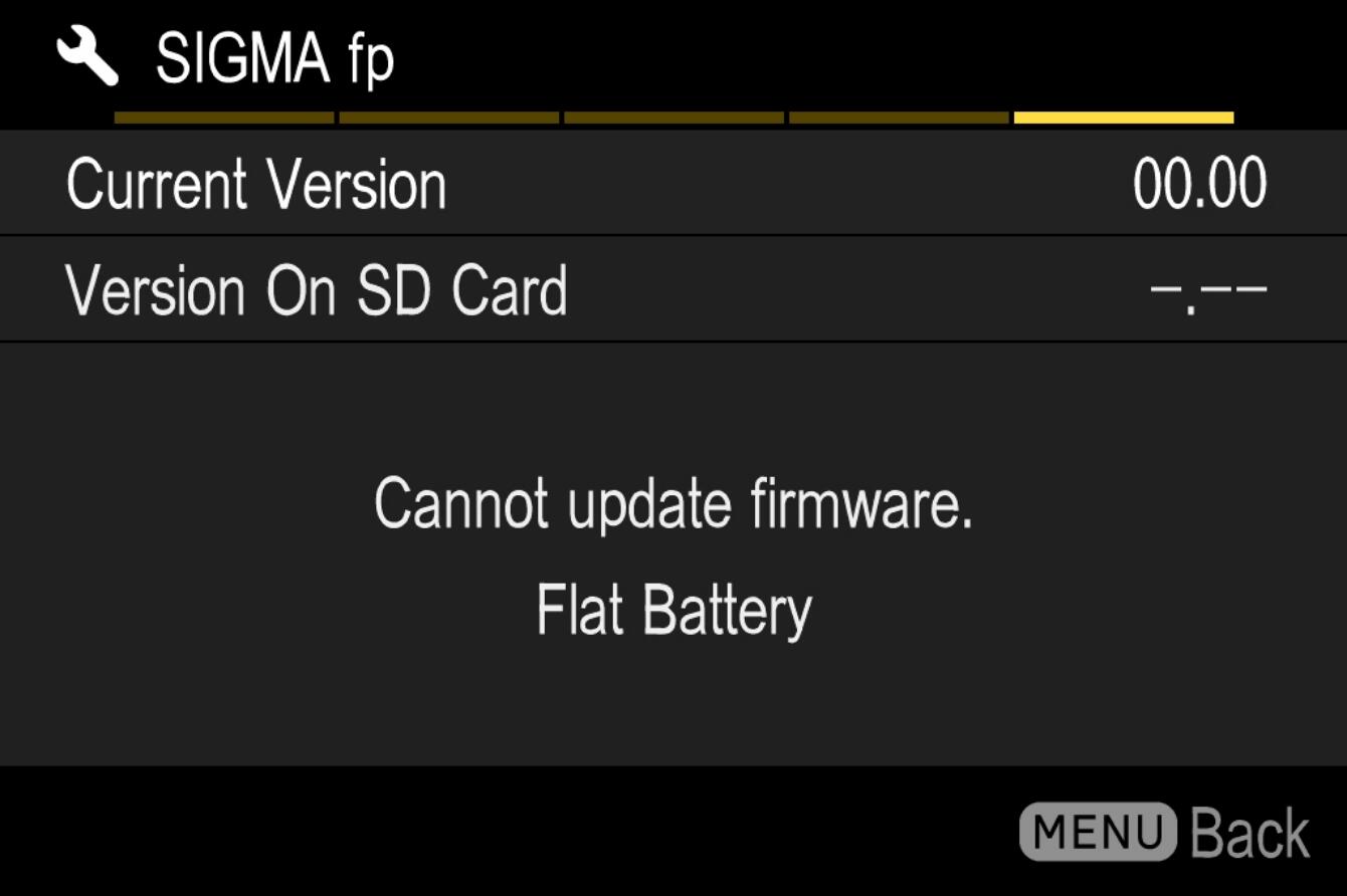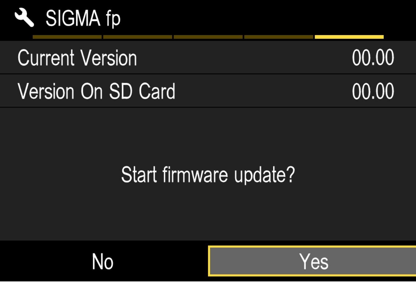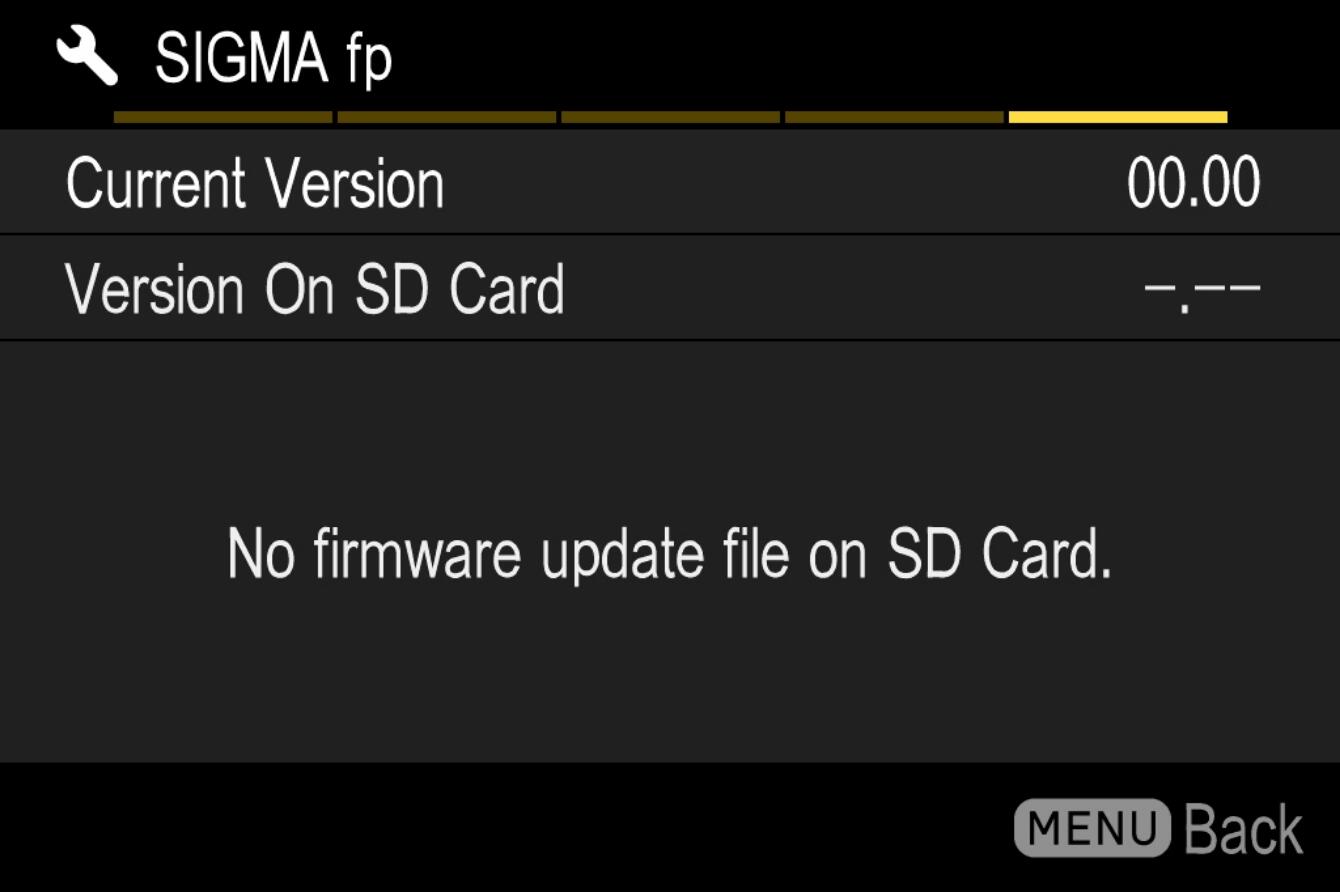 Insert the SD/SDHC/SDXC card storing the firmware file into the SIGMA fp and turn the camera on.