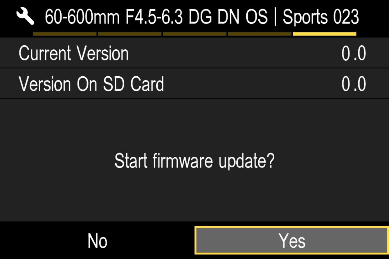 The following procedure is to update the lens firmware via SIGMA fp. For firmware updates of Leica and Panasonic L-Mount cameras, please follow the instruction manual for each camera.