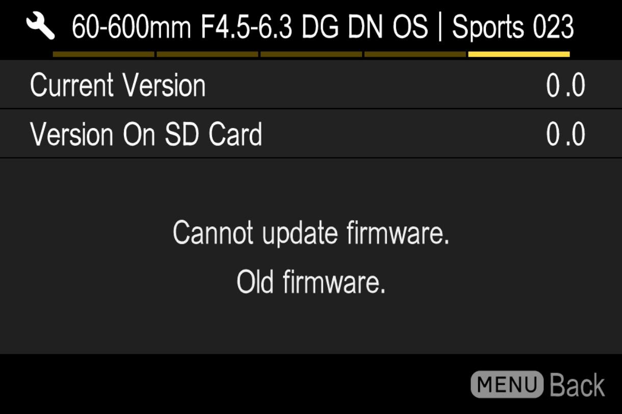 Check the “Information” version in the setup menu and confirm the lens version is updated to Ver.1.3