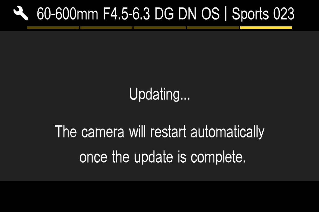 3. After closing it, the message “Updating the lens” will appear on the camera display, and the firmware update of the lens will start.