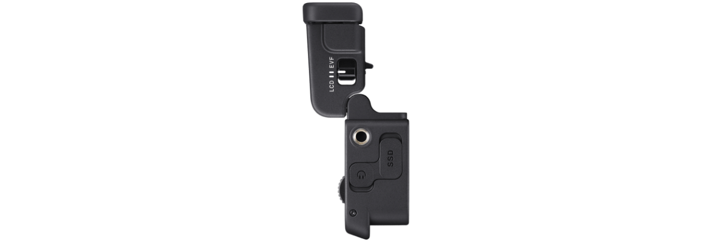 Users can record to an external SSD drive via the dedicated USB plug (Type-C), which is located on the side of the EVF-11.