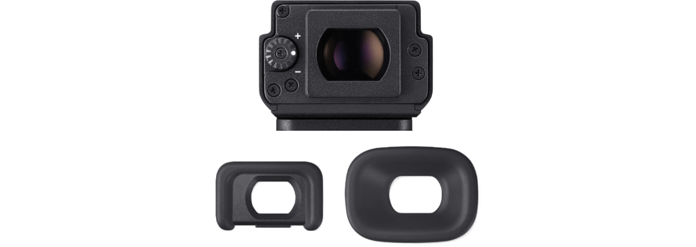 The EVF-11 has an eye point set at approx. 21 mm to ensure a full field-of-view without a dark vignette around the viewfinder. This helps photographers see the entire scene with complete clarity, even when wearing glasses. It has a wide diopter adjustment range of −4.0 to +3.0 dpt, and comes with two eyecups of different sizes to suit your preference. The EVF is designed for the best visibility, ease of use and comfort for photographers, giving them a complete view of their subject in perfect detail.