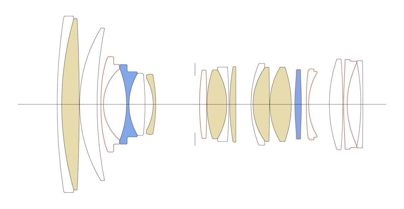 19 elements in 15 groups (6 FLD, 2 SLD, 5 aspherical elements)