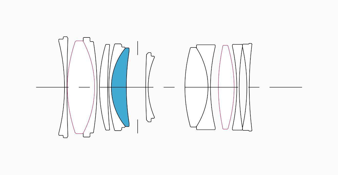 Lens construction: 12 elements in 9 groups, with 1 SLD glass and 2 aspherical lenses