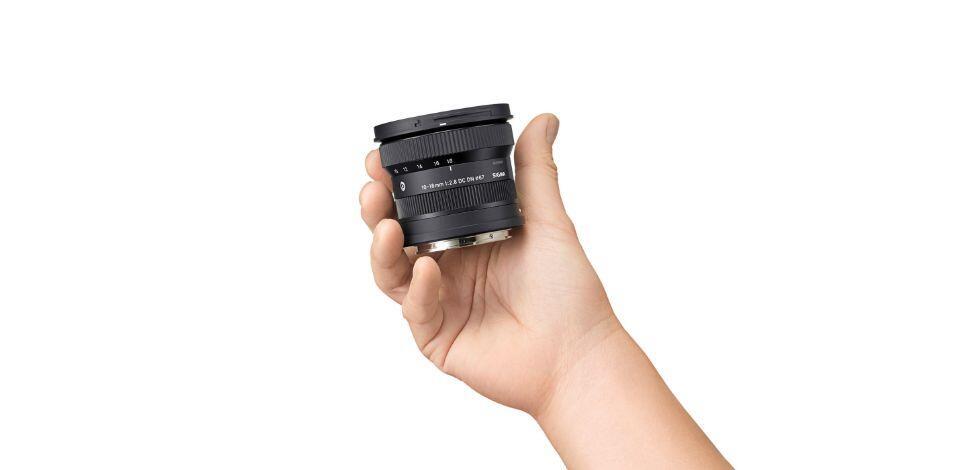 The Sigma 10-18mm F2.8 DC DN | Contemporary is the world’s smallest and lightest ultra-wide-angle zoom lens for APS-C cameras*, with a length of 62.0mm, a maximum diameter of 72.2mm, and a weight of 260g*. The lens can be carried around with ease or attached to an APS-C mirrorless camera and a gimbal to create an ultra-portable video setup.