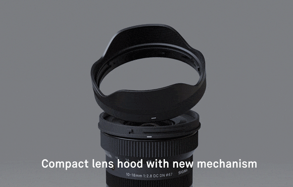 The Sigma 10-18mm F2.8 DC DN | Contemporary is the world’s smallest and lightest ultra-wide-angle zoom lens for APS-C cameras*, covering an effective focal range of 15-27mm (35mm equivalent). With ultra-sharp optics, a bright F2.8 aperture and a newly developed push-on petal type lens hood, photographers can create expressive images anytime, anywhere. The lens features a unique aspherical element that reduces the overall size of the lens and enhances image quality.