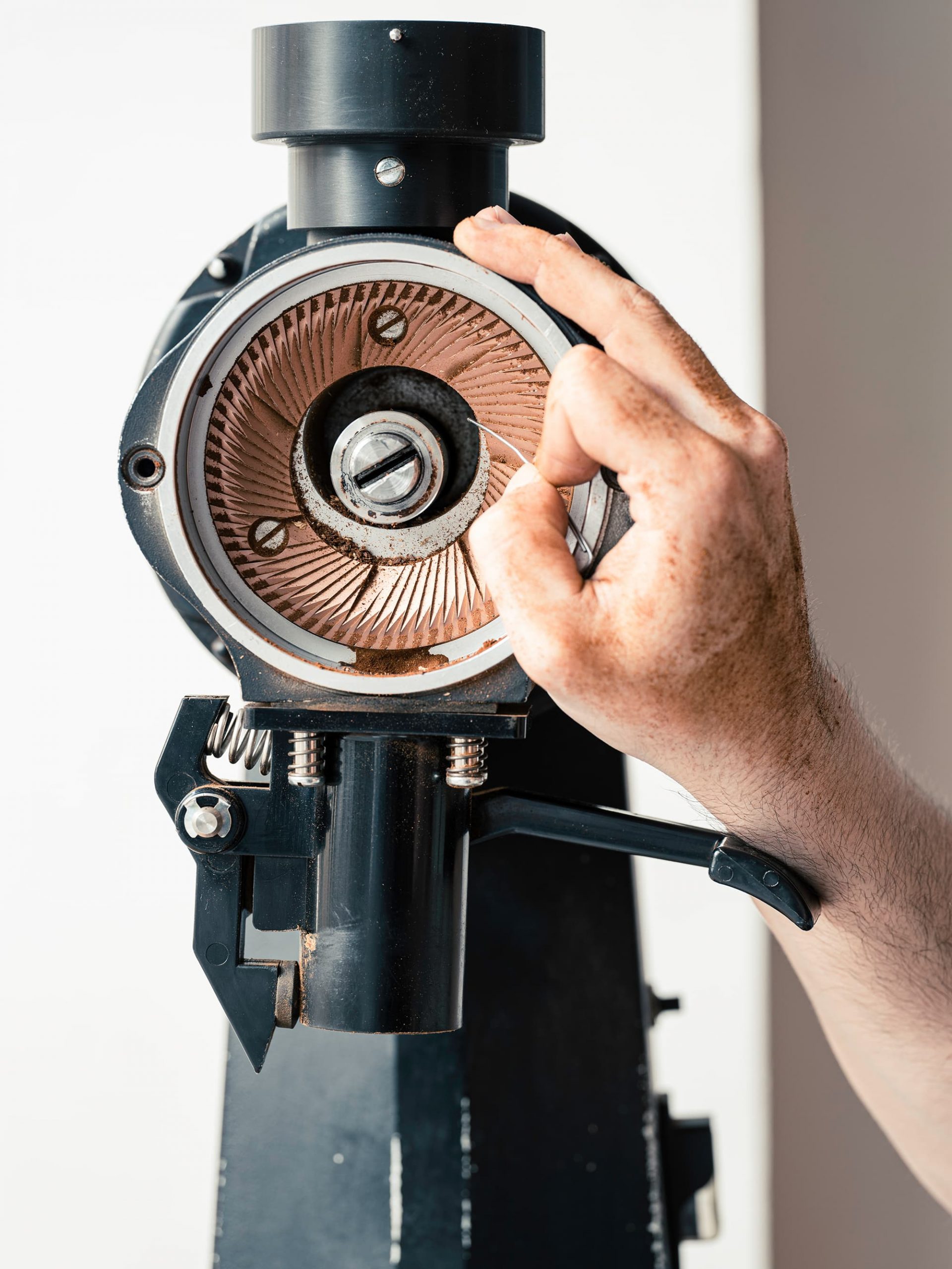 At the end of the day, just like I do with my photography equipment, we clean everything so it is ready for the next day. The coffee grinder is essential to being able to extract the best that the coffee beans have to offer. Coffee beans contain a lot of oil and this oil builds up inside the grinder so we take it apart to remove all residue and coffee grinds.